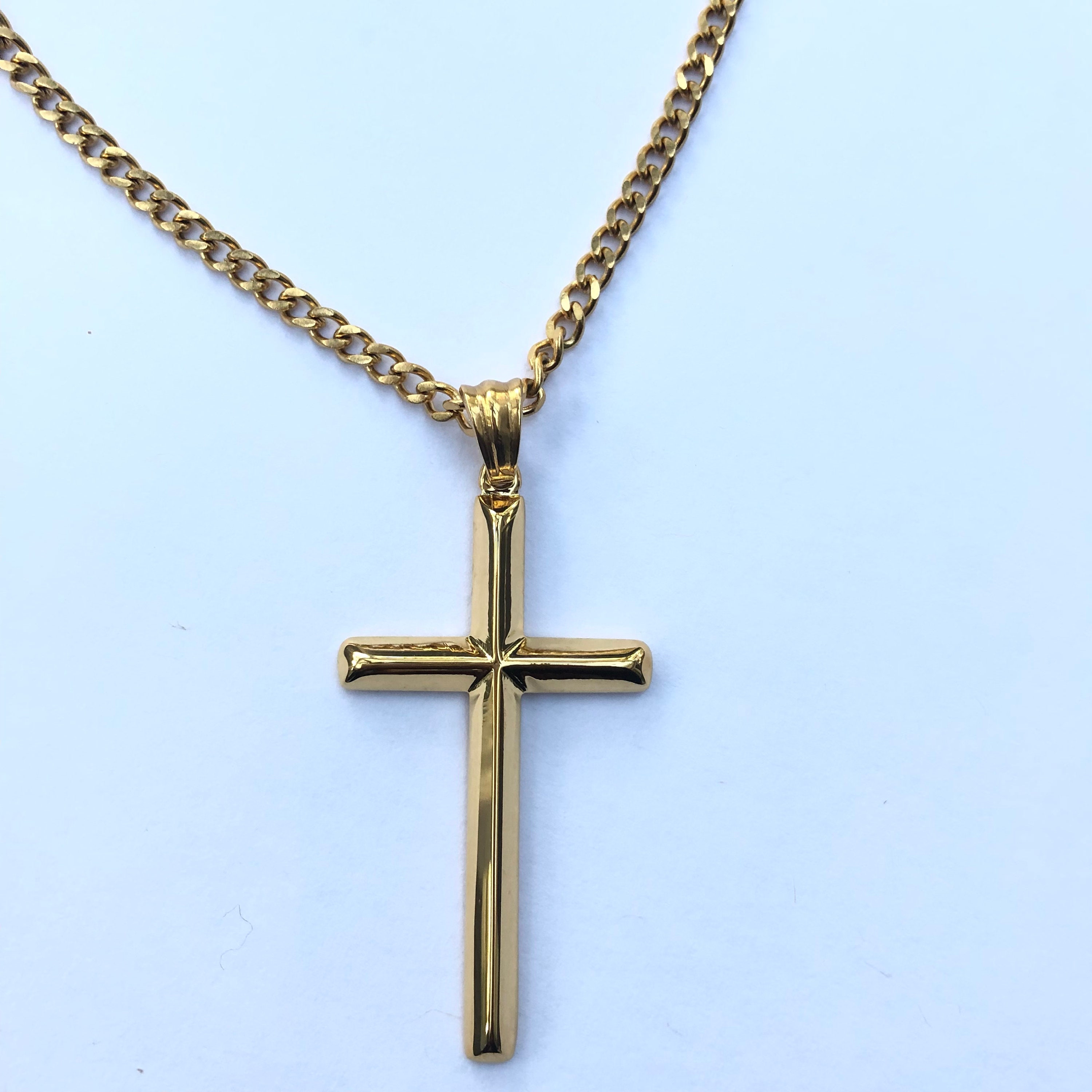 Mens 24k Gold Cross Chain, Gold Cuban Chain Cross Pendant, Mens Cross Necklace, Gold Chain Necklace,...