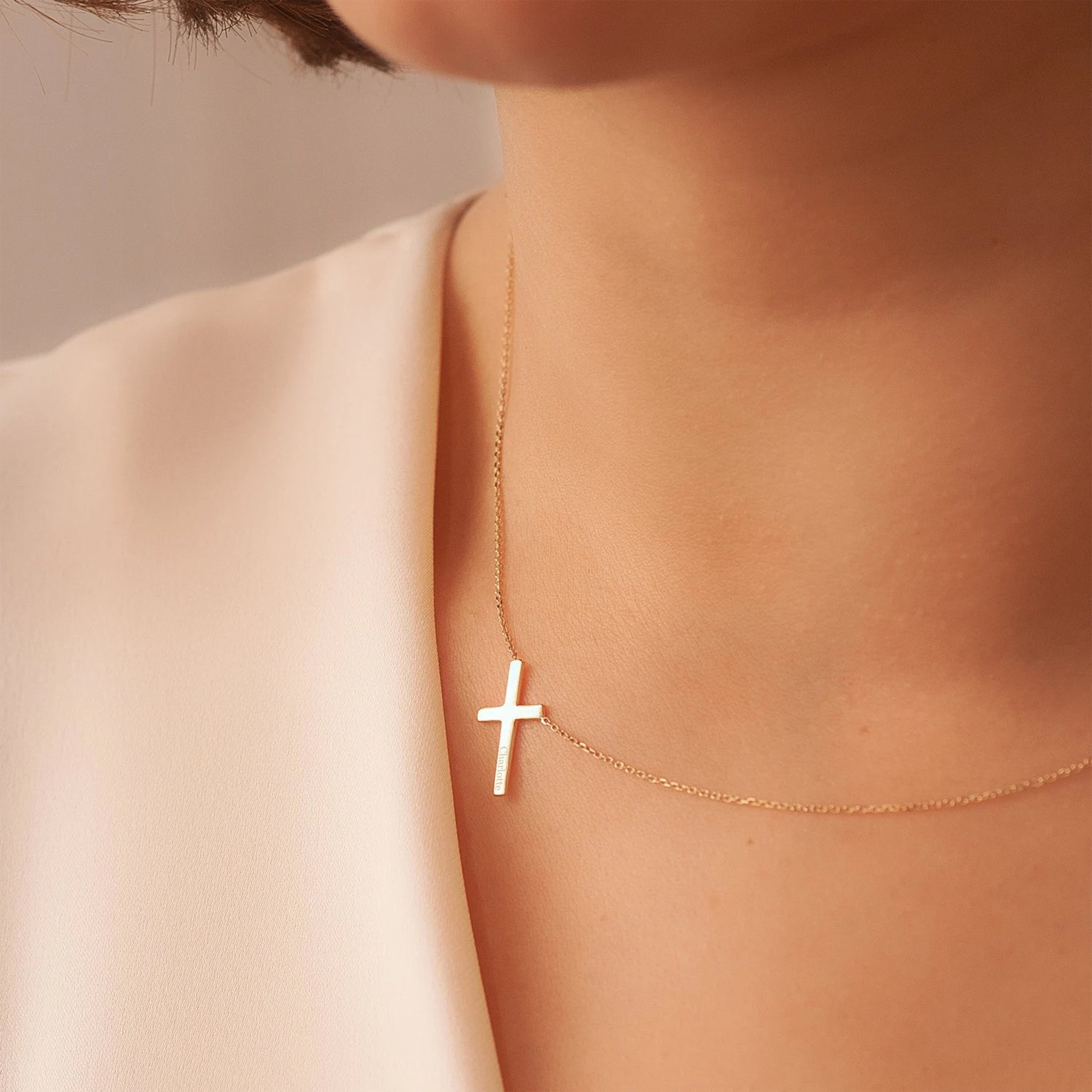 "T I N Y - C R O S S - N E C K L A C E Tiny SIDE CROSS necklace is an elegant and unique neckla...