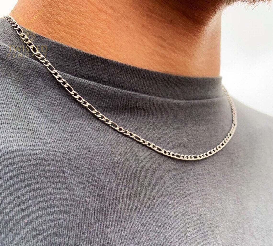 Silver Figaro Chain, 3mm Silver Chain Necklace for Men, Silver Chai...