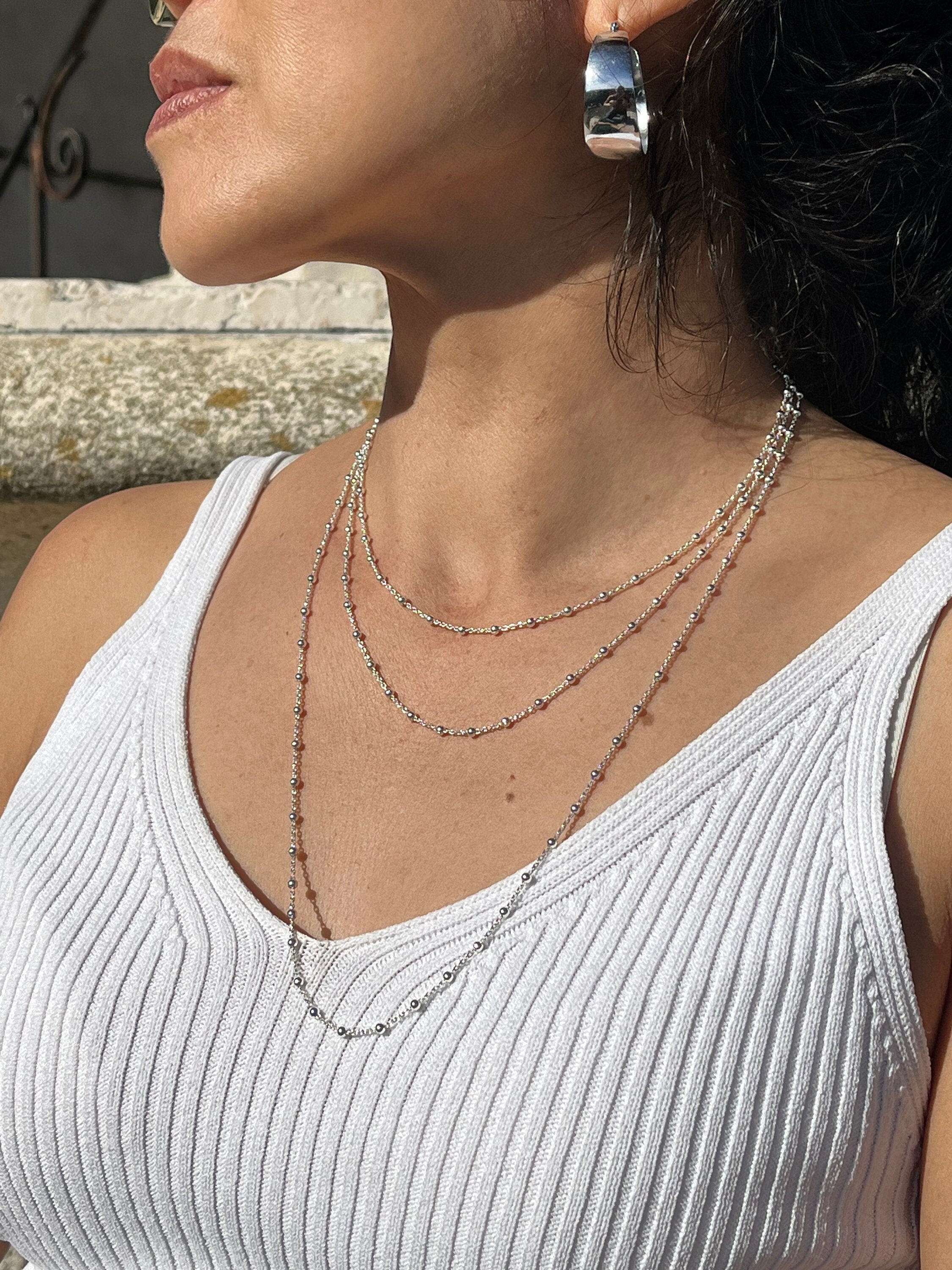 Ball necklace, Bead chain, Satellite chain, Sterling Silver Chain, ...