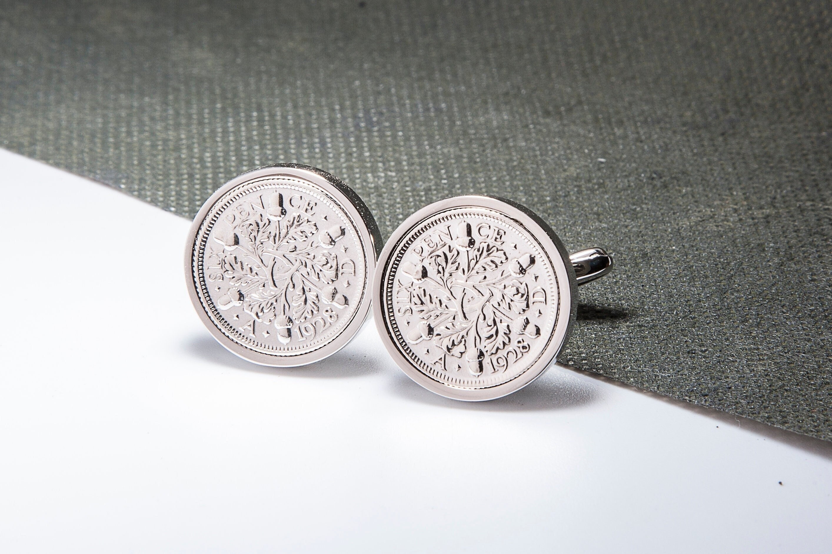 Lucky sixpence cufflinks - silver plated - choice of year 1928-1967...