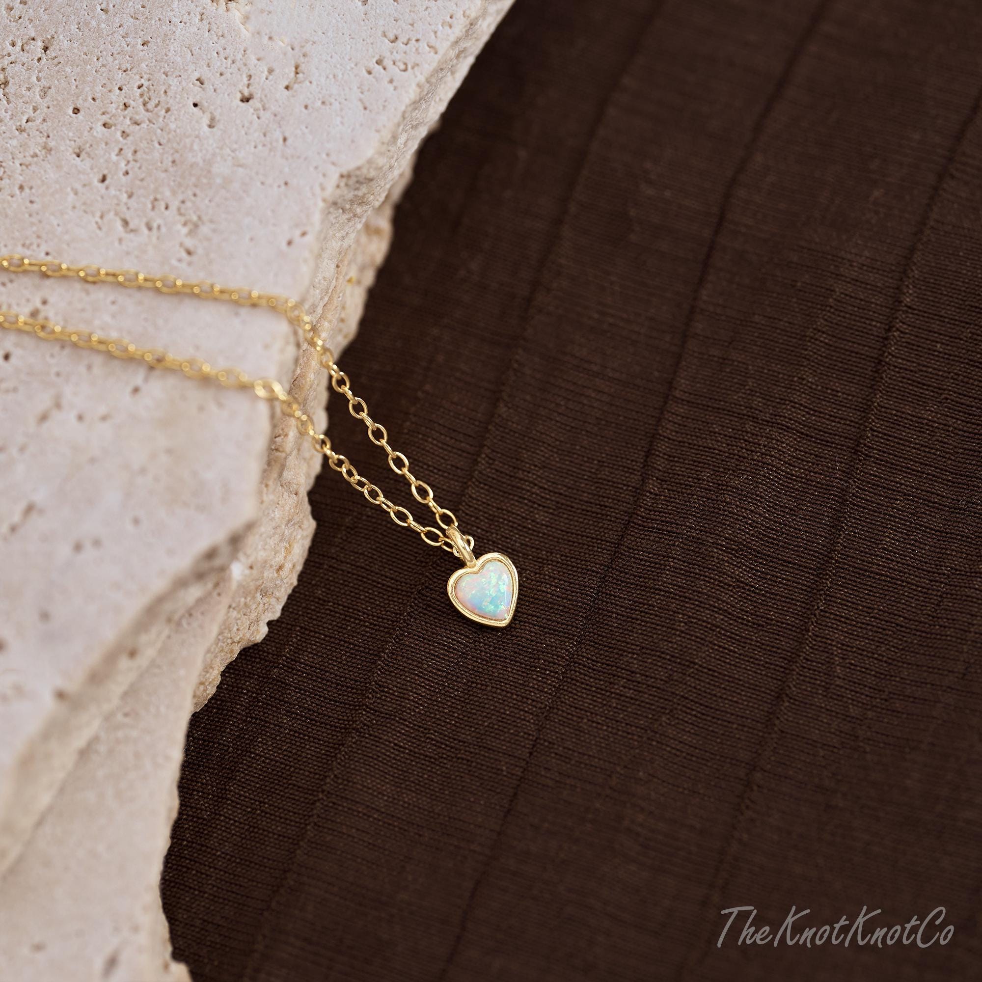 Dainty Opal Heart Charm Necklace in Silver, Heart Pendant Necklace,...