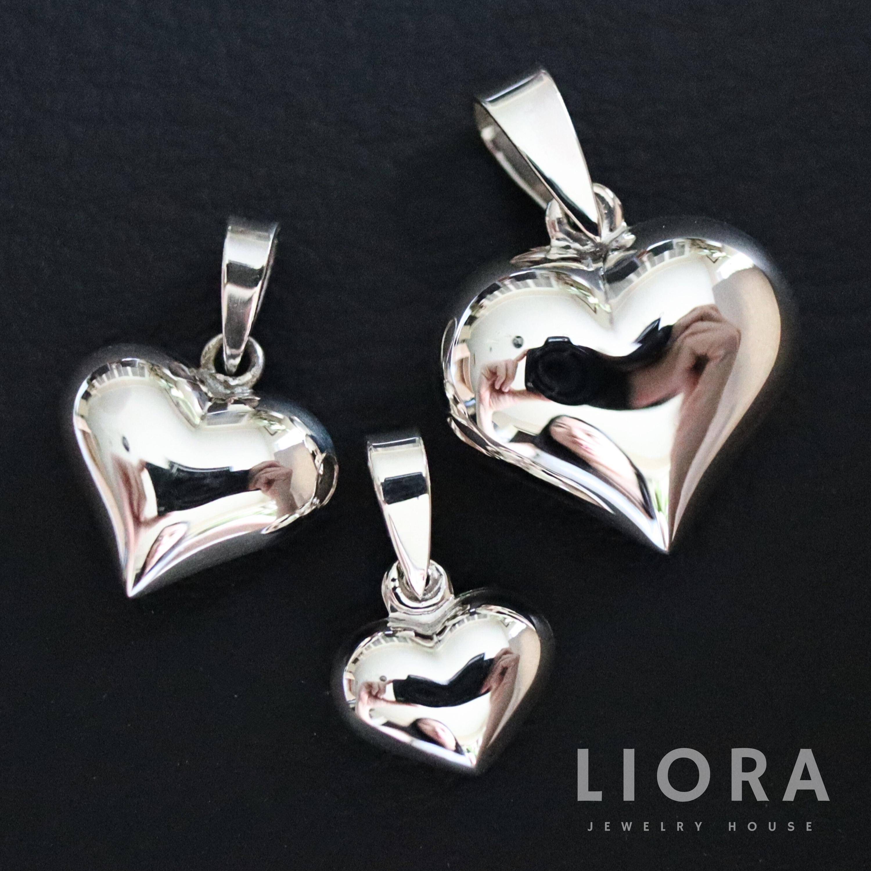 925 Sterling Silver Heart Pendant Necklace, Heart Necklace, 3D Hear...
