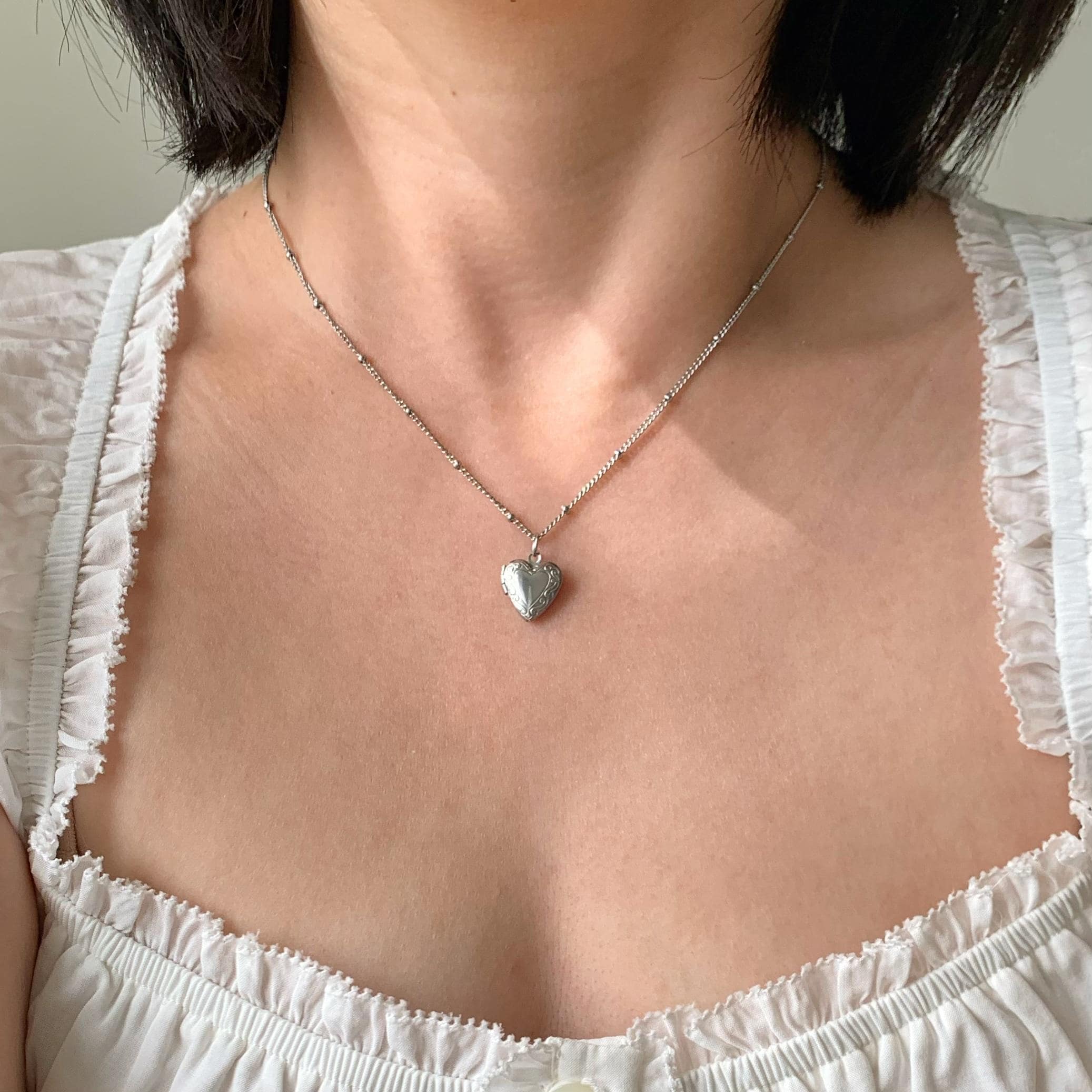 silver heart locket necklace, dainty everyday silver heart pendant ...