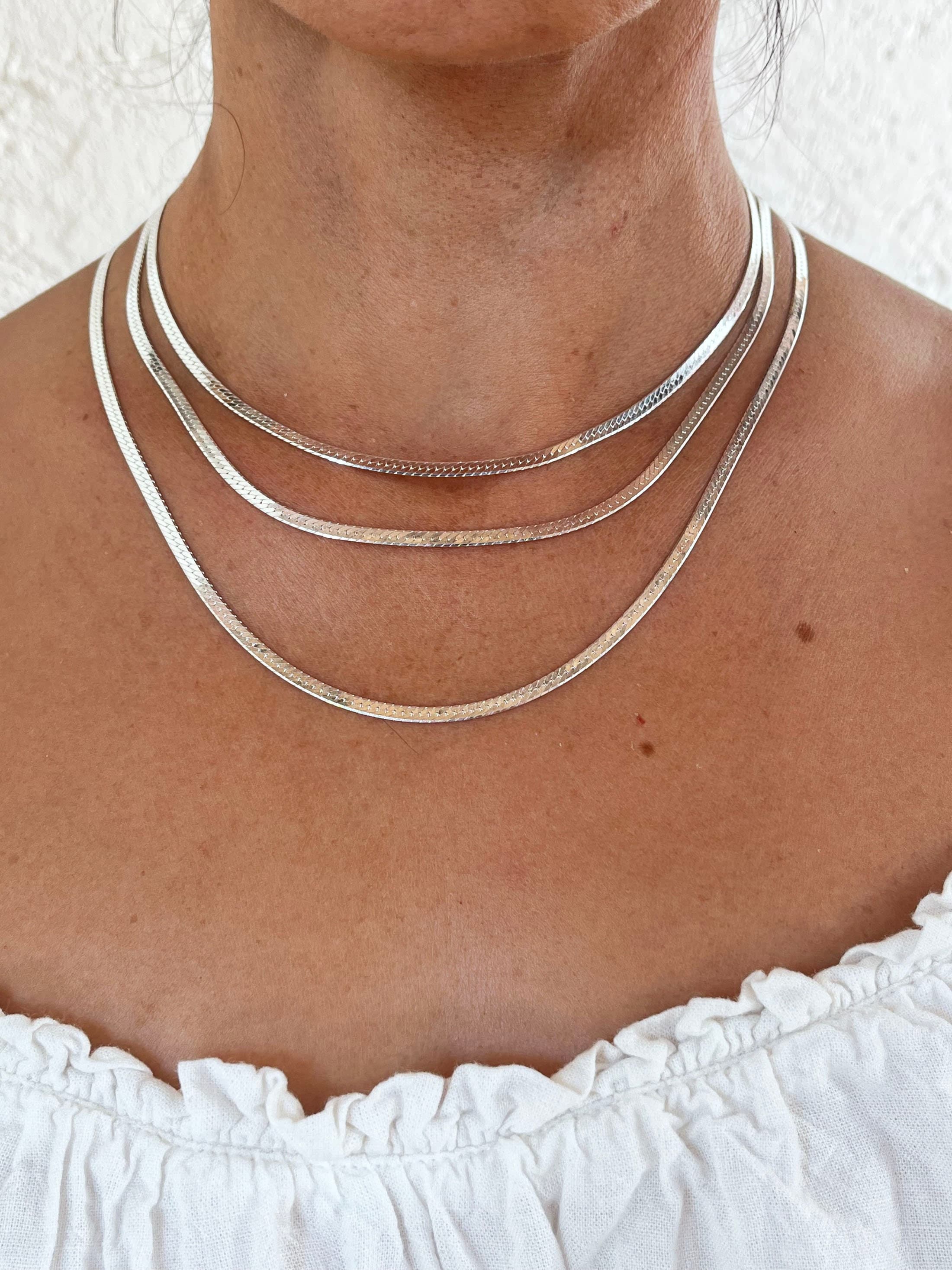 Silver Herringbone Chain Necklace 3.5 mm - Sterling Silver Flat Sna...