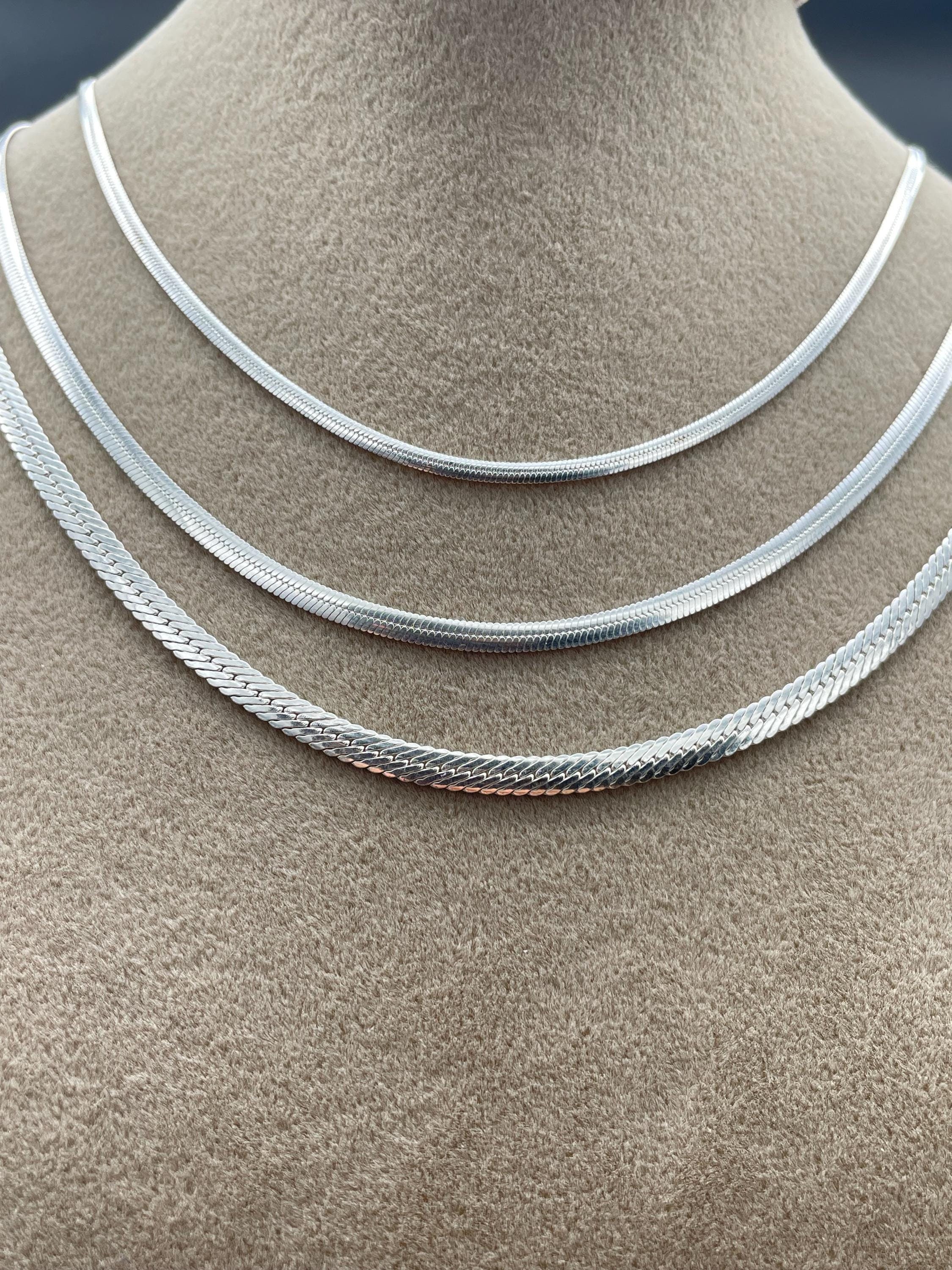 Flat 925 sterling silver chain. Herringbone necklace in 925 sterlin...