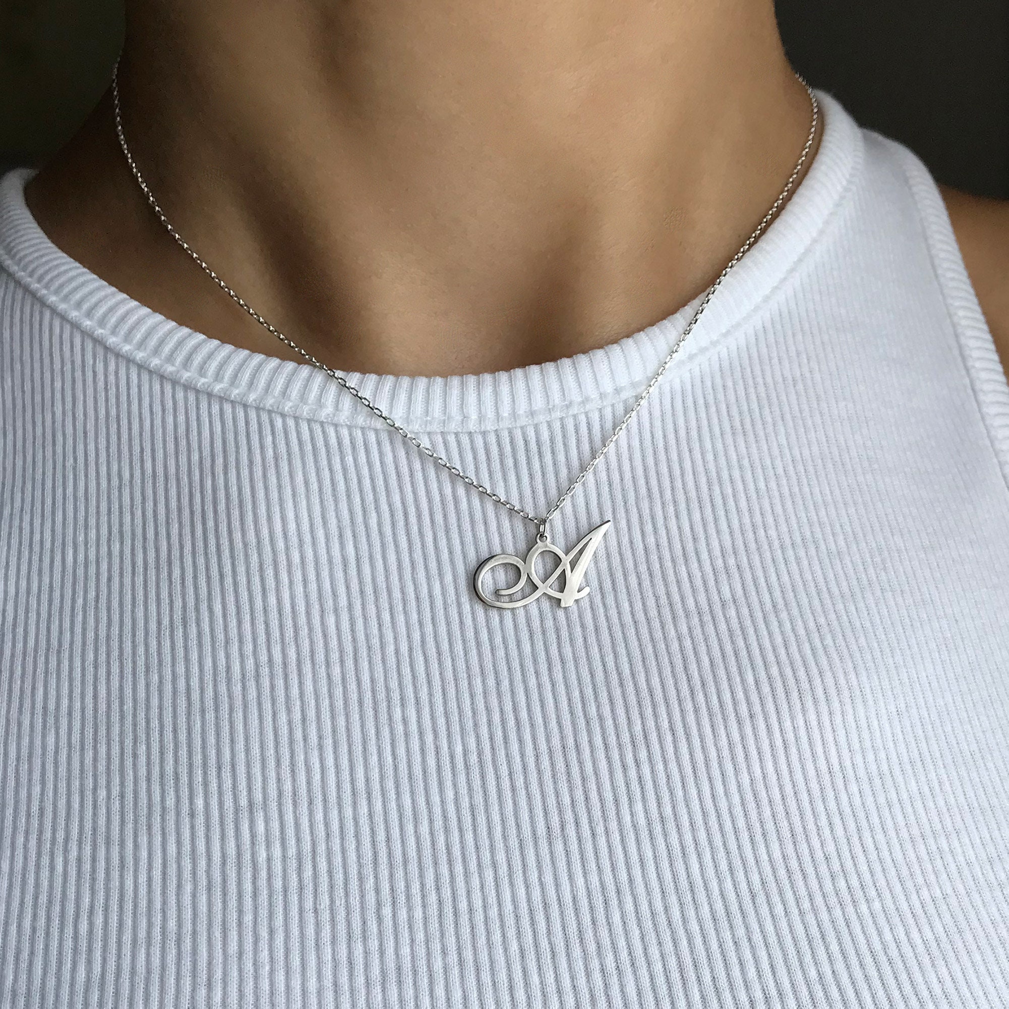 10mm Sterling Silver Initial Letter Pendant Necklace, Silver Initia...