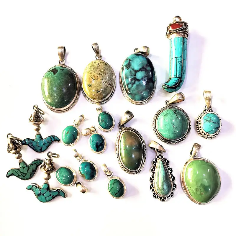 Multi Designs Real Turquoise Big Charms 925 Silver Inlaid Stone Pendant Vintage Semi-precious Jewelr...