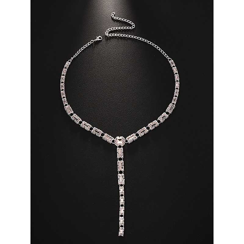 Women's Silver Crystal Choker Necklace for Party - Elegant Y-Shaped...