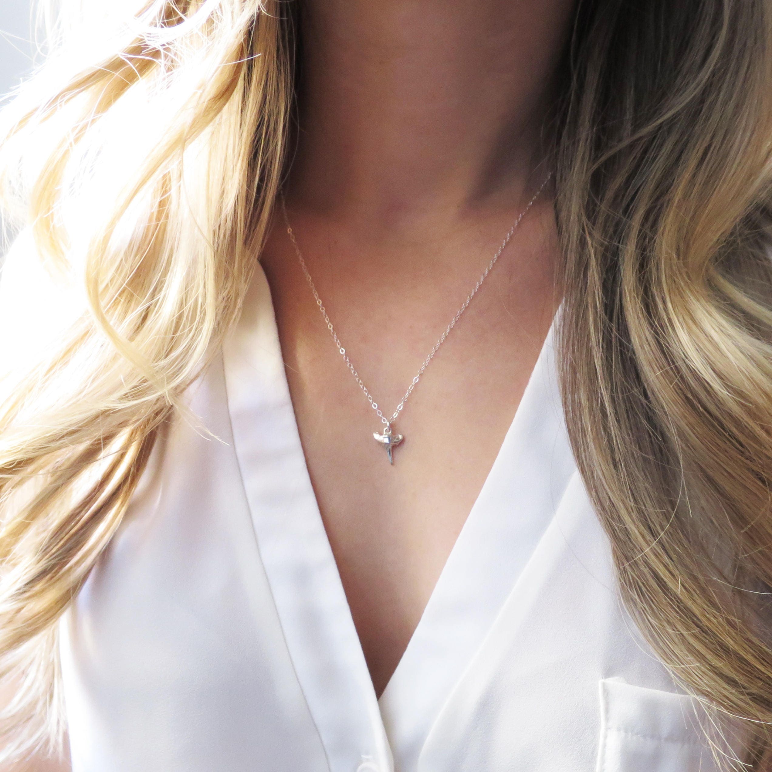 "This minimalist sterling silver shark tooth pendant necklace is perfectly minimal and edgy. Gr...