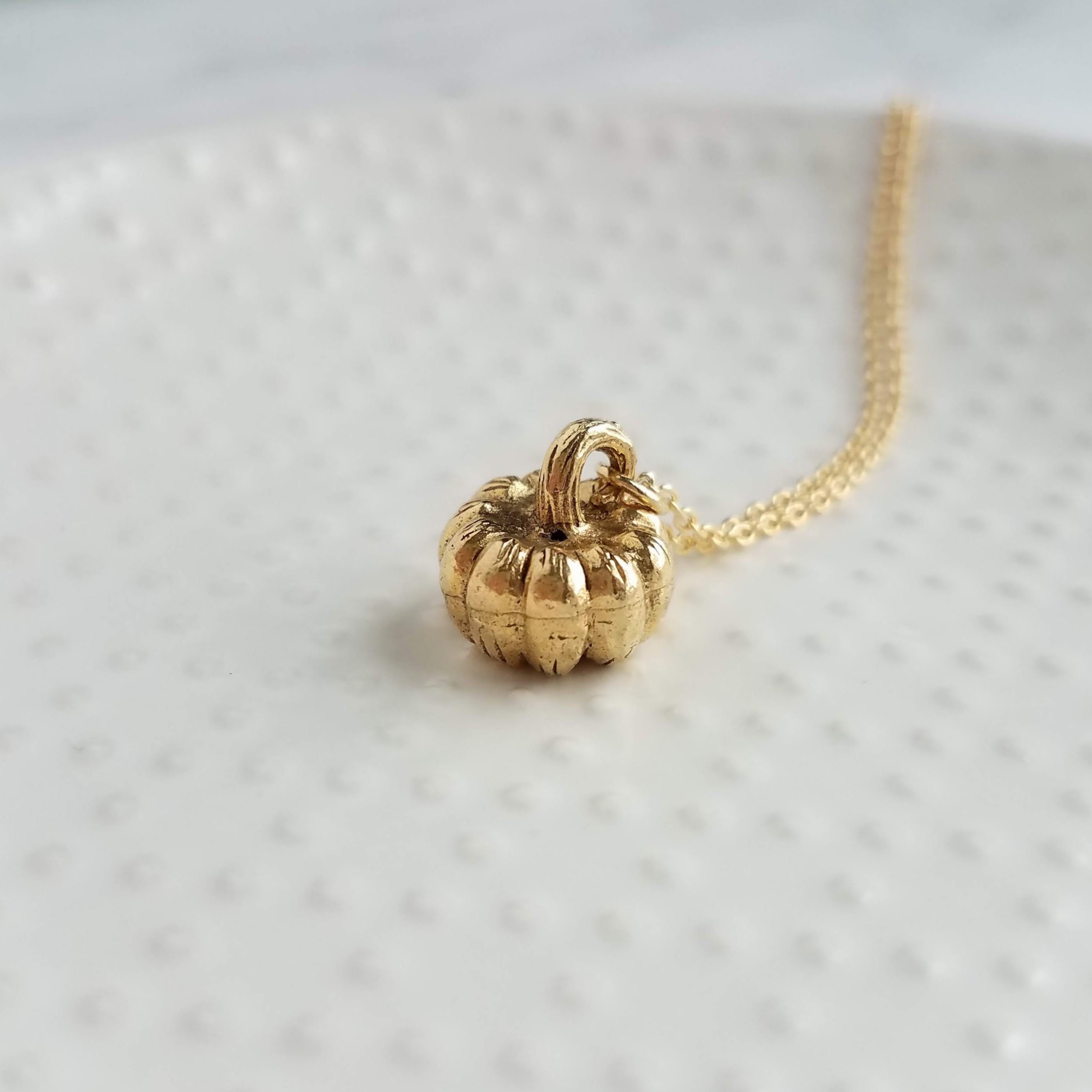 Gold Pumpkin Necklace, gold Halloween necklace, gold fall necklace,...