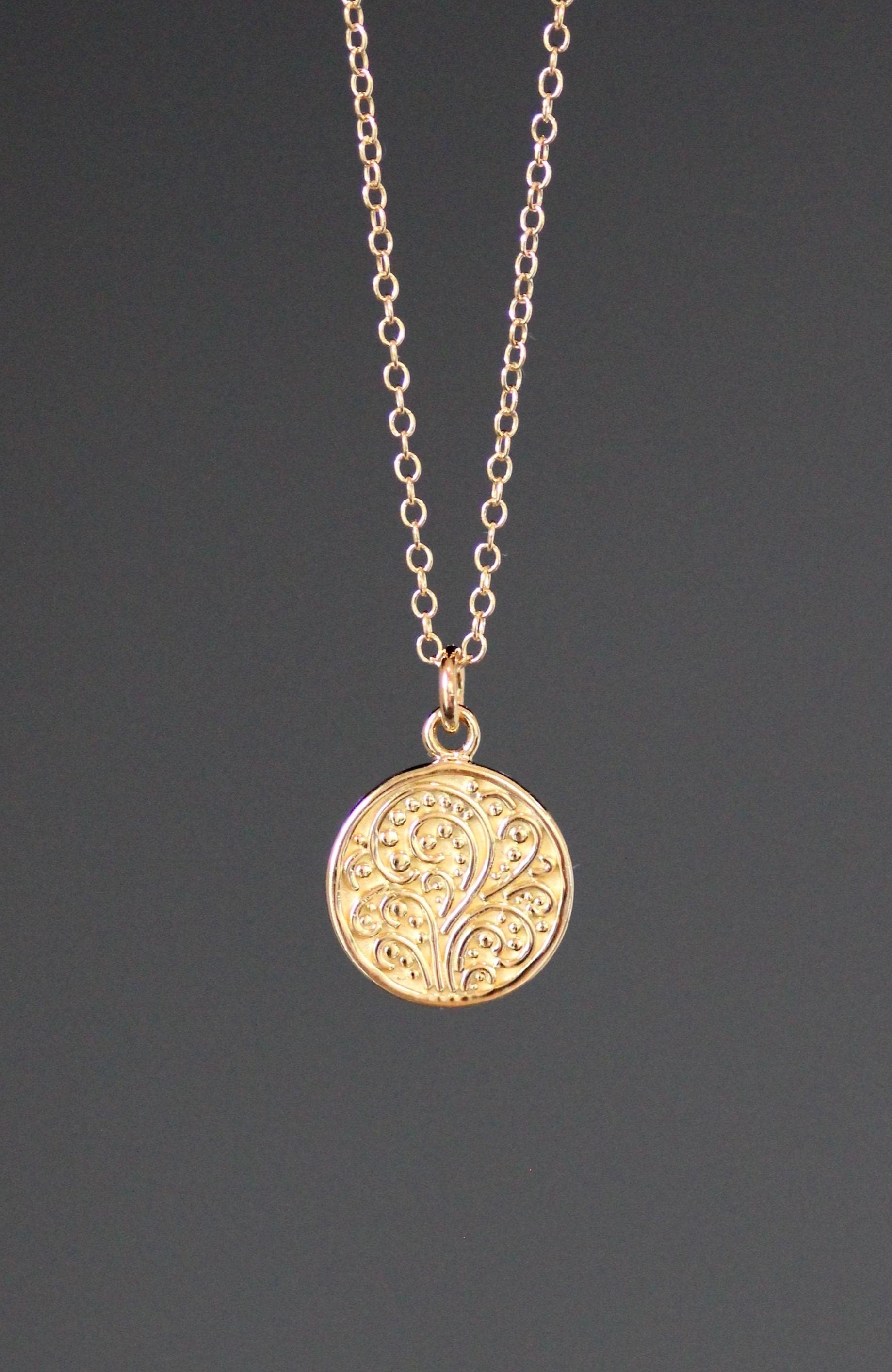 Gold Coin Pendant, Dainty Coin Necklace, Dainty Gold Coin Necklace,...