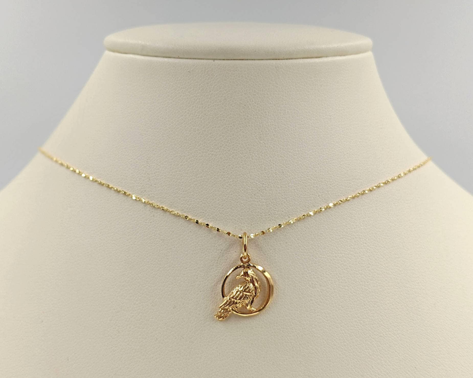 "This 925 Raven necklace is an adorable, gold charm featured on a 925 sterling silver plated go...