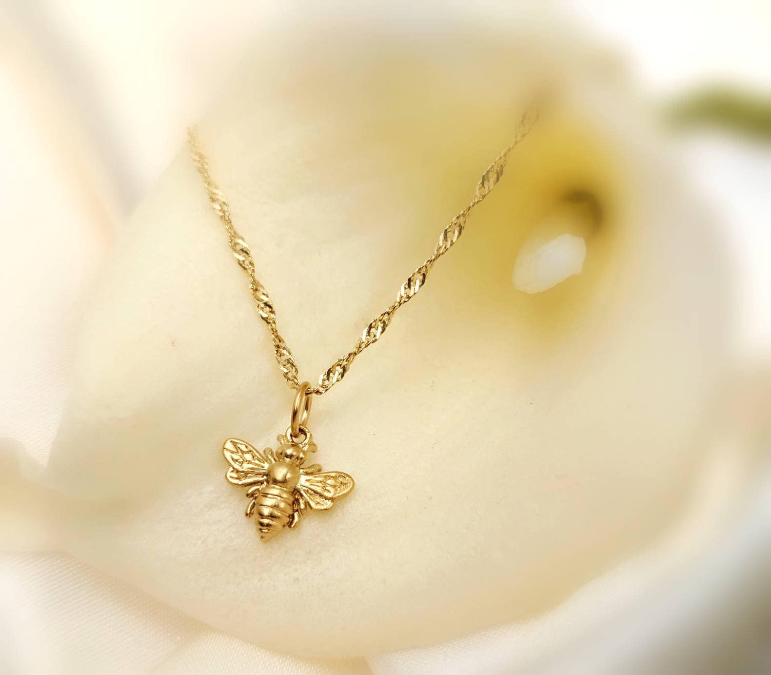 24K Gold Vermeil Honey Bee 925 Necklace; Gold Bumble Bee; Small Gol...