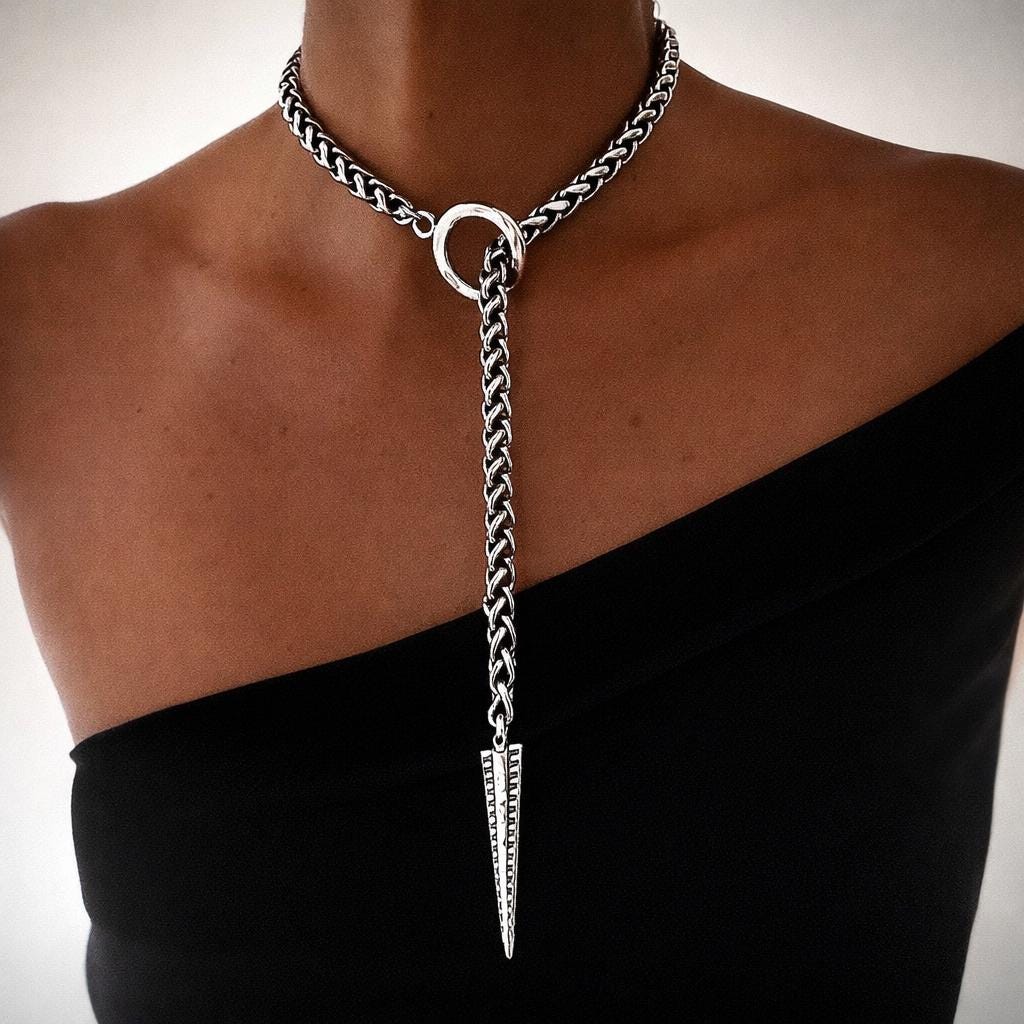 Collar necklace, silver choker, silver spike necklace, silver chain...