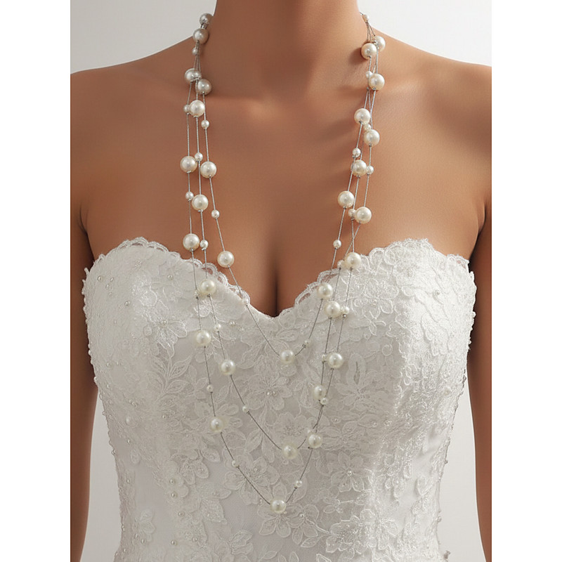 Women's Long Layered Pearl Necklace - Lightweight Multi-Strand Faux...