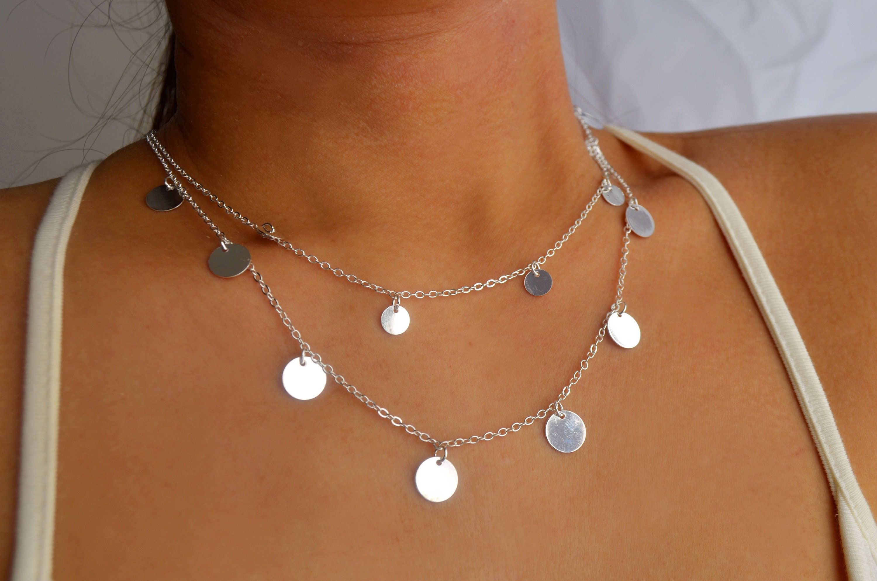 silver coins necklace set / silver coin necklace / coin necklace si...