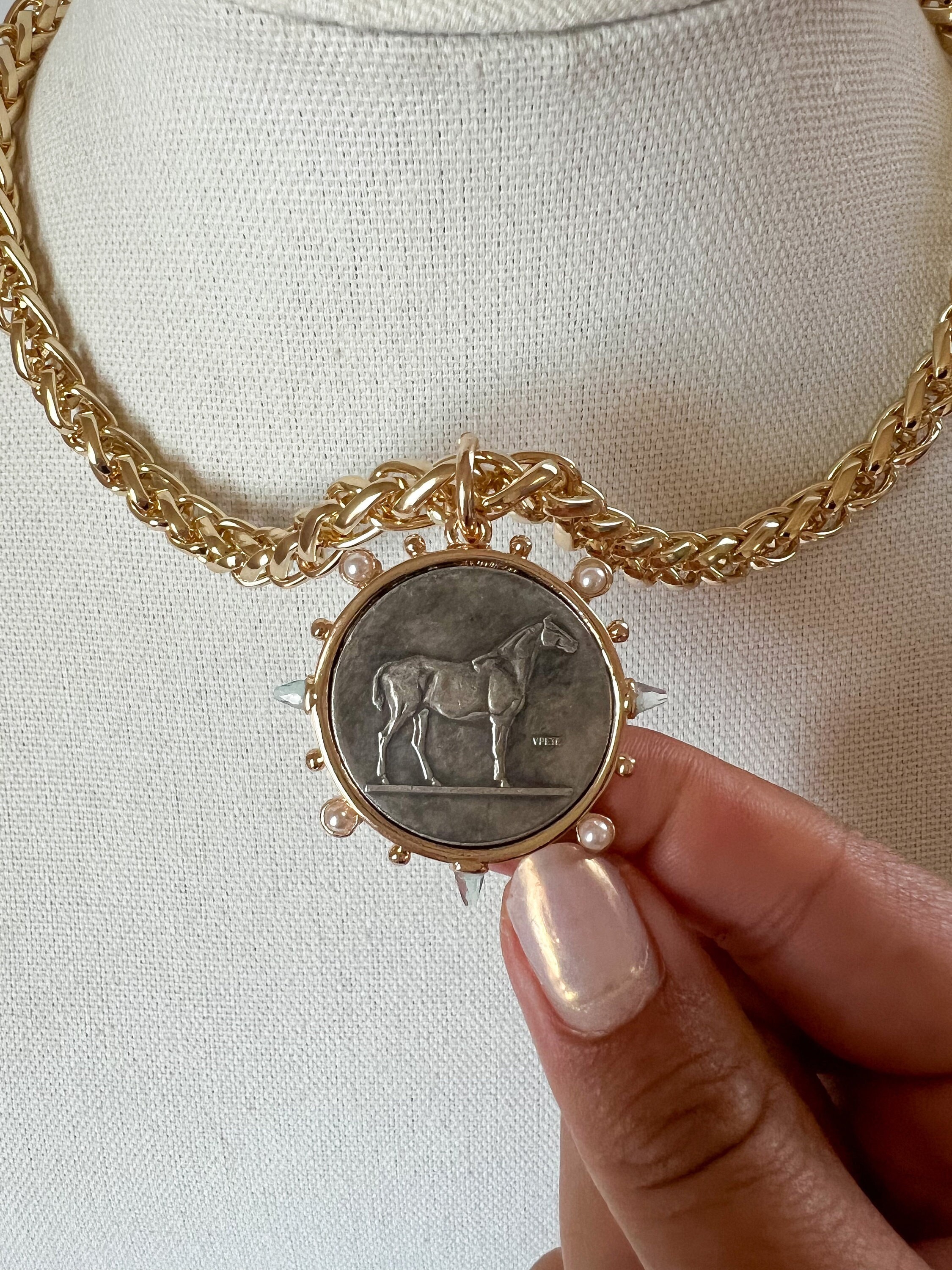 Vintage Coin Necklace Gold Coin Pendant Stone Spike Large Gold Coin...