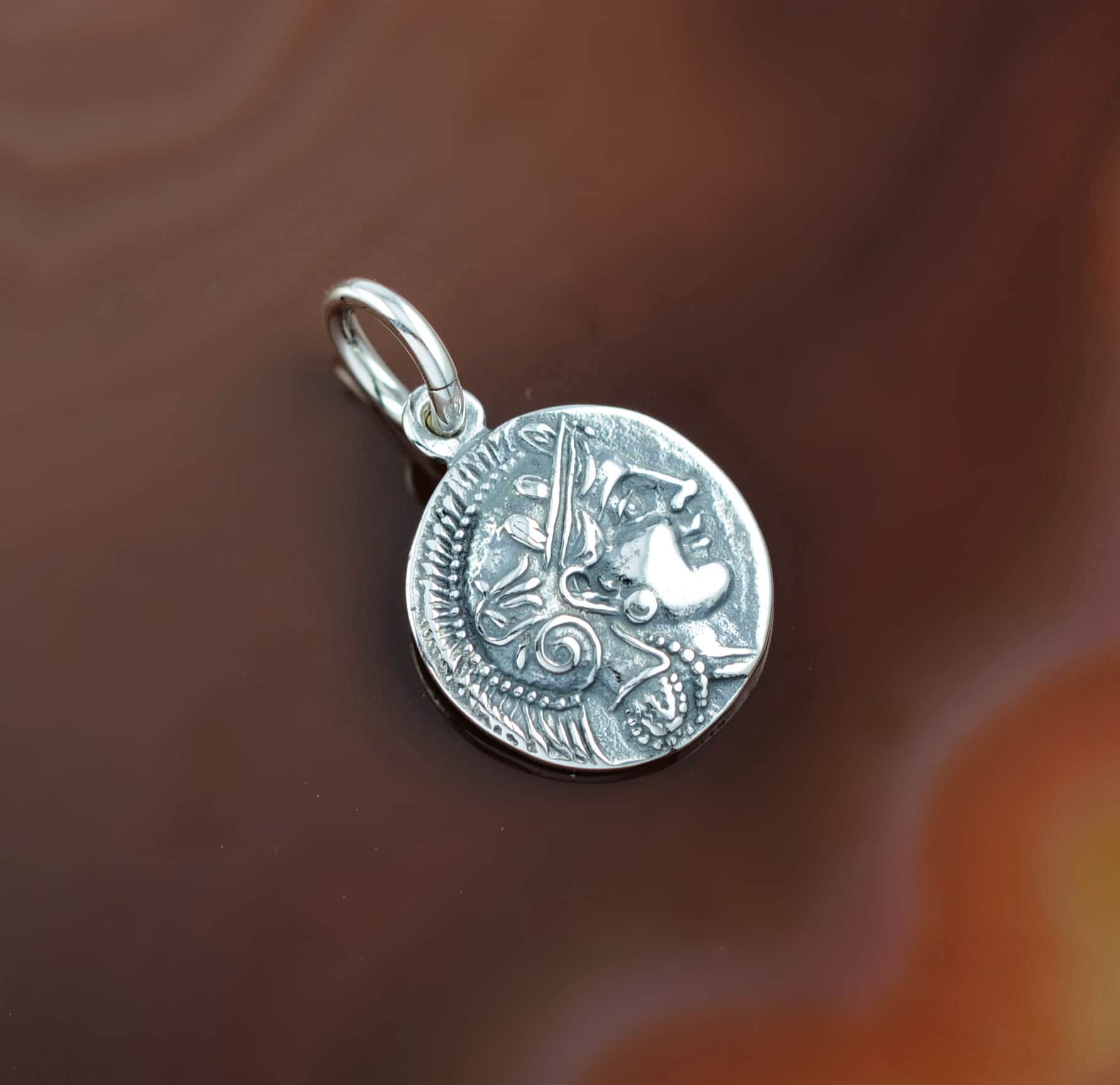 Athena silver pendant, Athena pendant, ancient coin pendant, coin p...