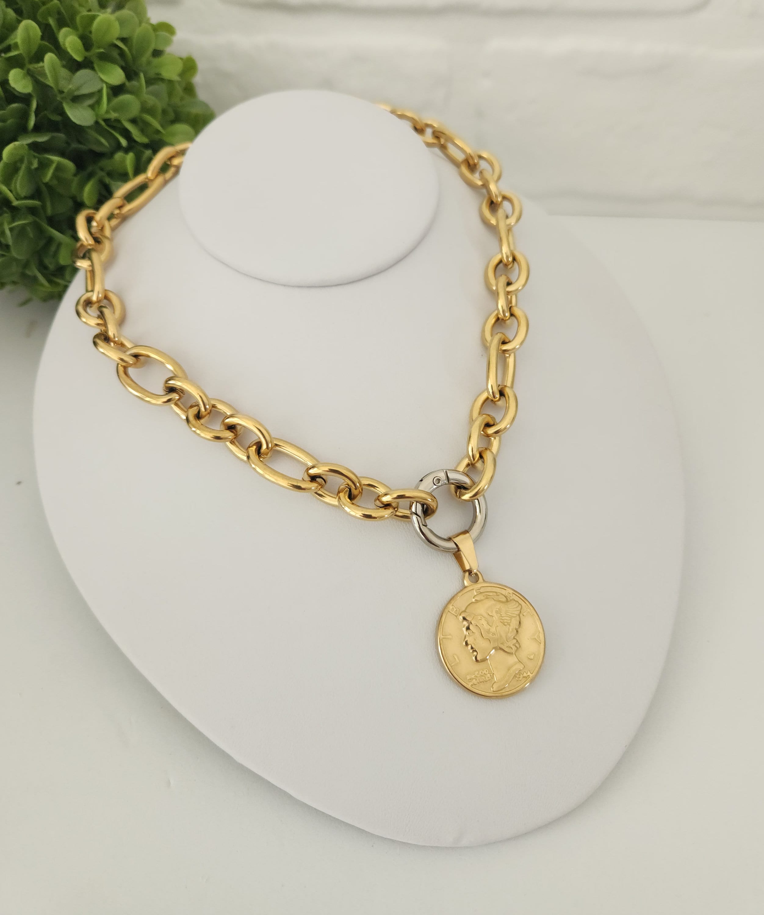Dime coin jewelry necklace, Thick Chain, Gold coin necklace, Gold p...