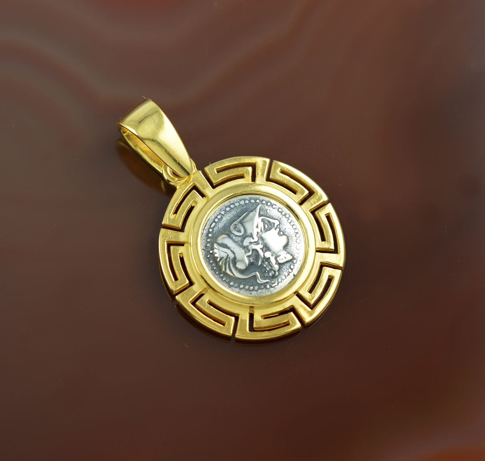 "Athena coin golden silver necklace, Athena pendant, coin necklace, coin pendant, greek coin pe...