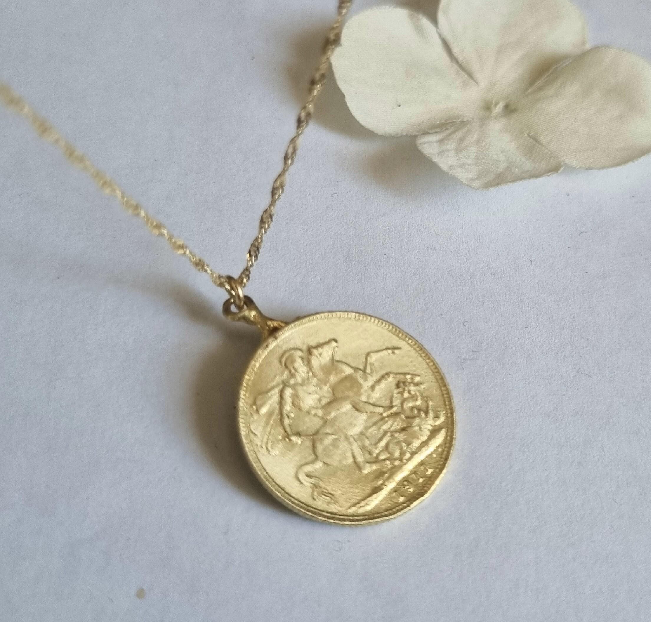 "This gold coin necklace was handmade using an old King George V coin made in 1911, from which ...