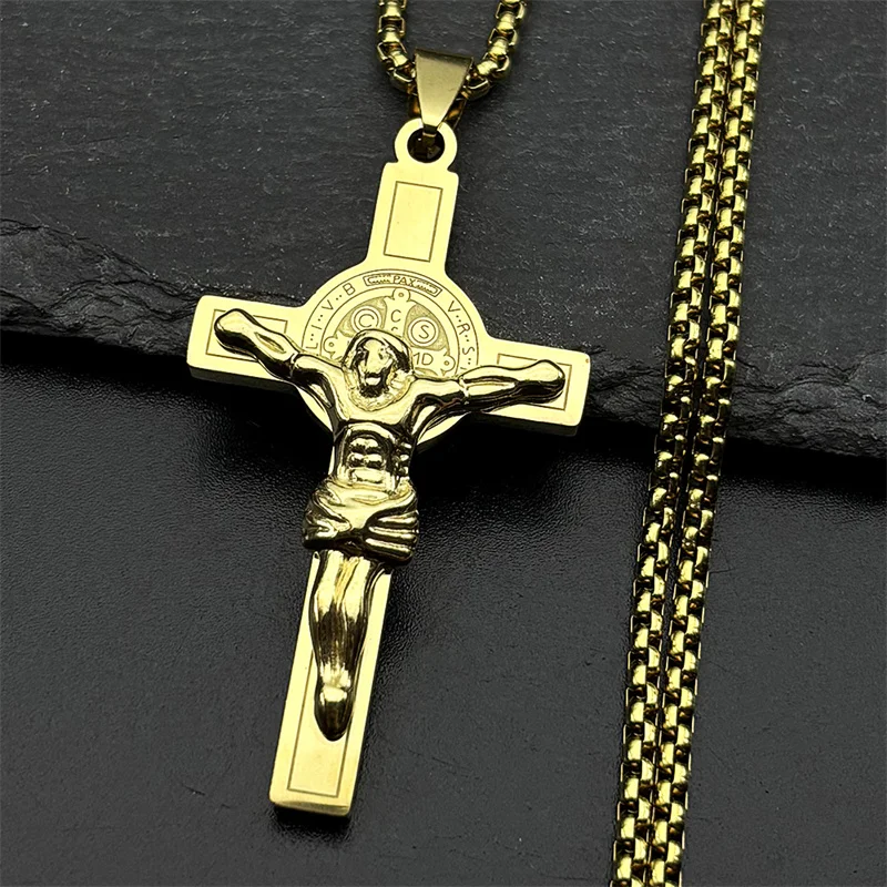 Saint Benedict Cspb Necklace for Women Men Stainless Steel Gold Color Jesus Crucifix Chain Jewery sa...
