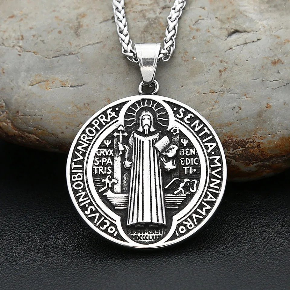 Vintage 316L Stainless Steel Saint Benedict Exorcism Pendant Necklace For Men Fashion Catholic Amule...