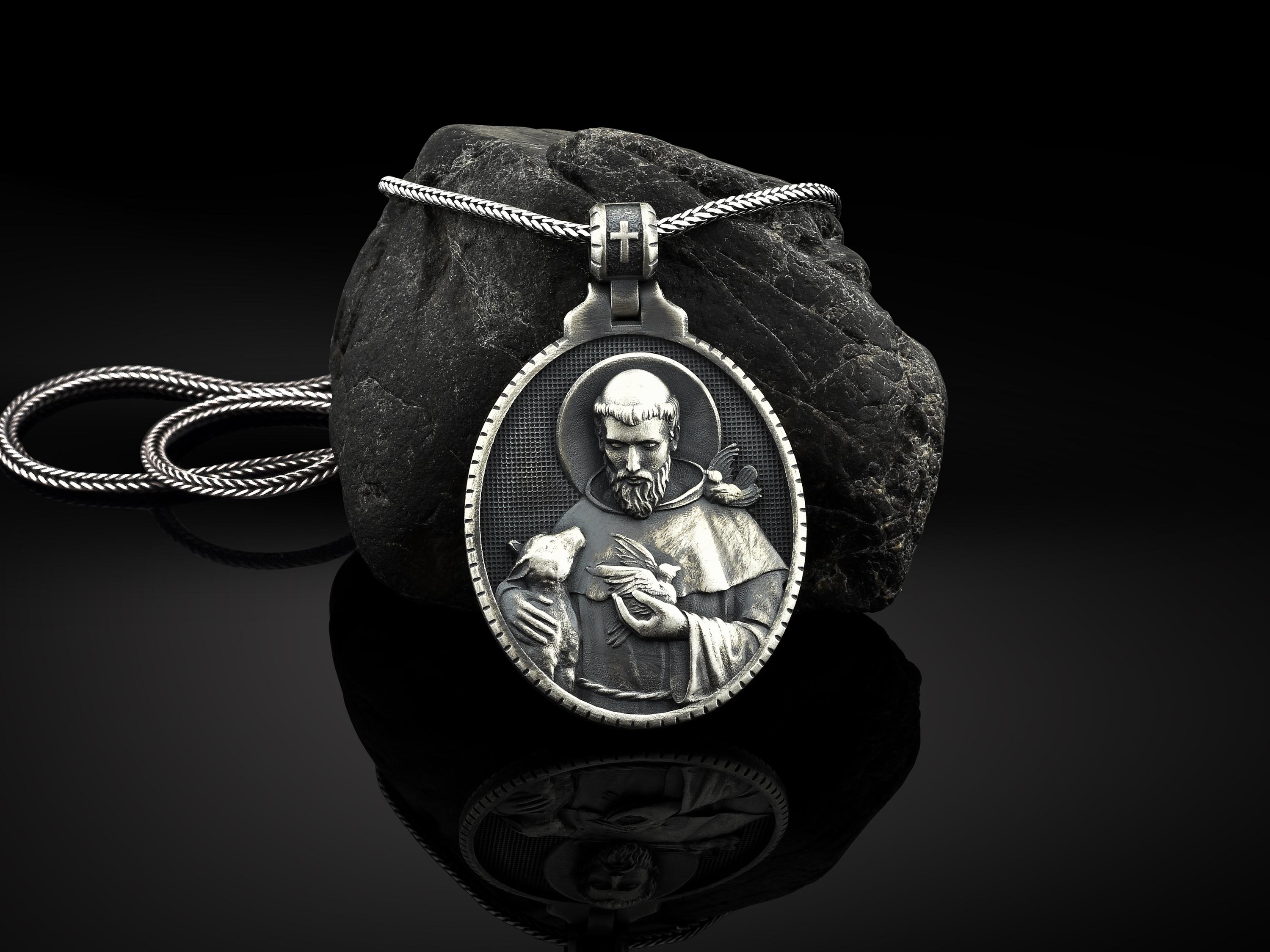 Silver Saint Francis Necklace, Saint Francis Mens Pendant, Christia...
