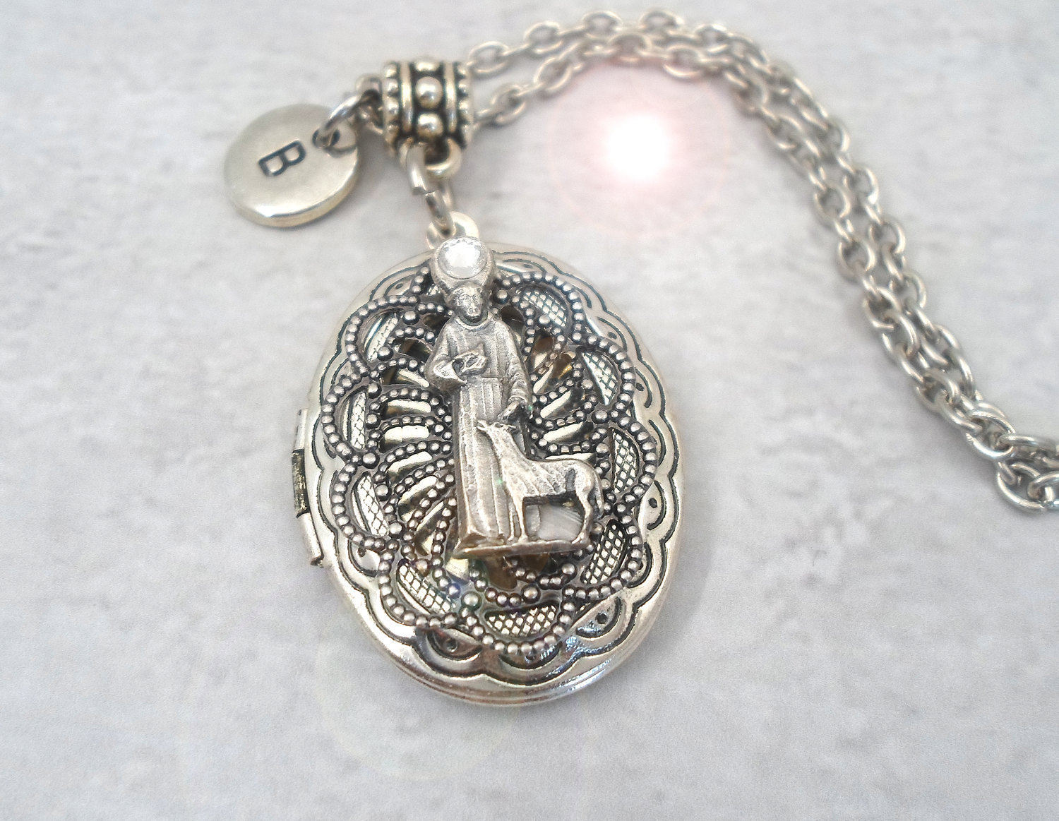 St Francis Necklace, St. Francis Locket, Patron Saint of Animals, S...