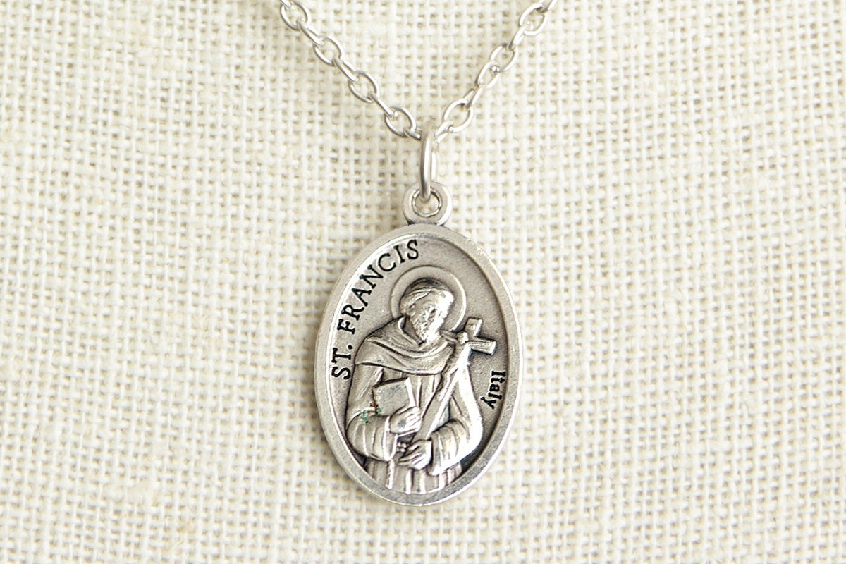 Saint Francis Medal Necklace. St Francis Necklace. Catholic Necklac...