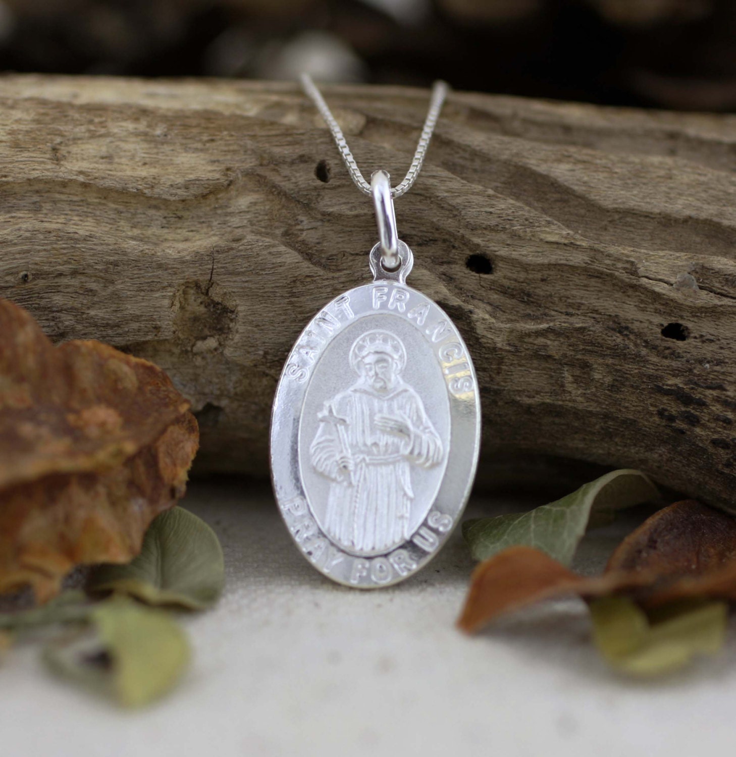 Saint Francis Medal, Catholic Pendant, St Francis Pendant, Silver S...