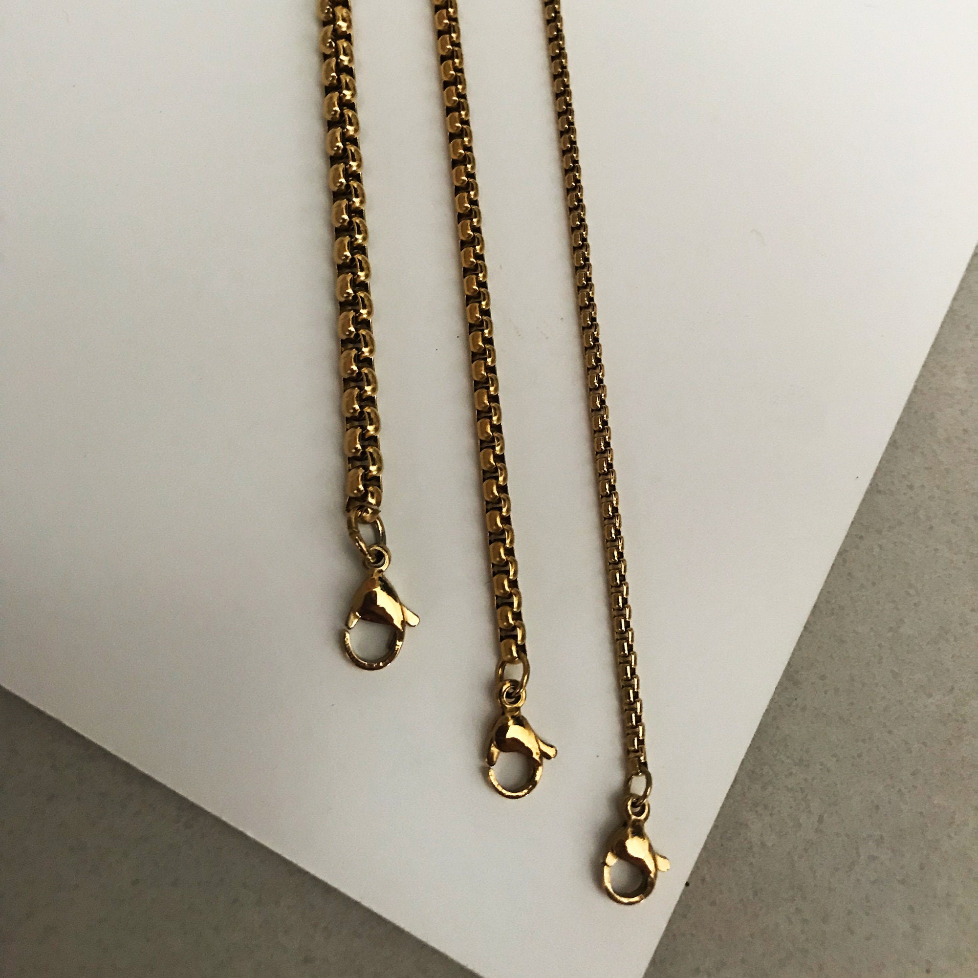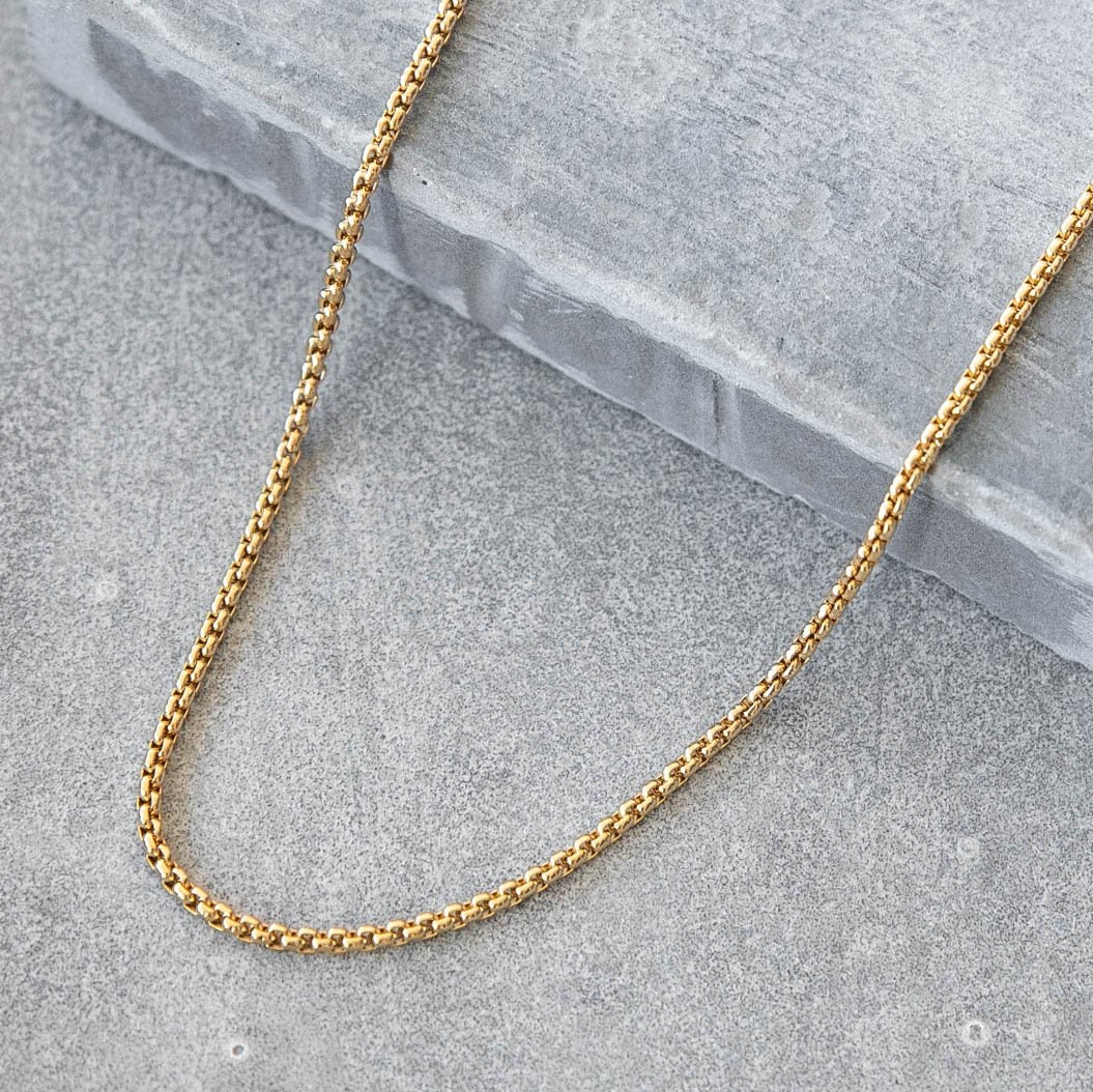 Gold Round Box Chain, Unisex Round Box Chain, Stainless Steel Chain, Gift For Her & Him, Unisex ...
