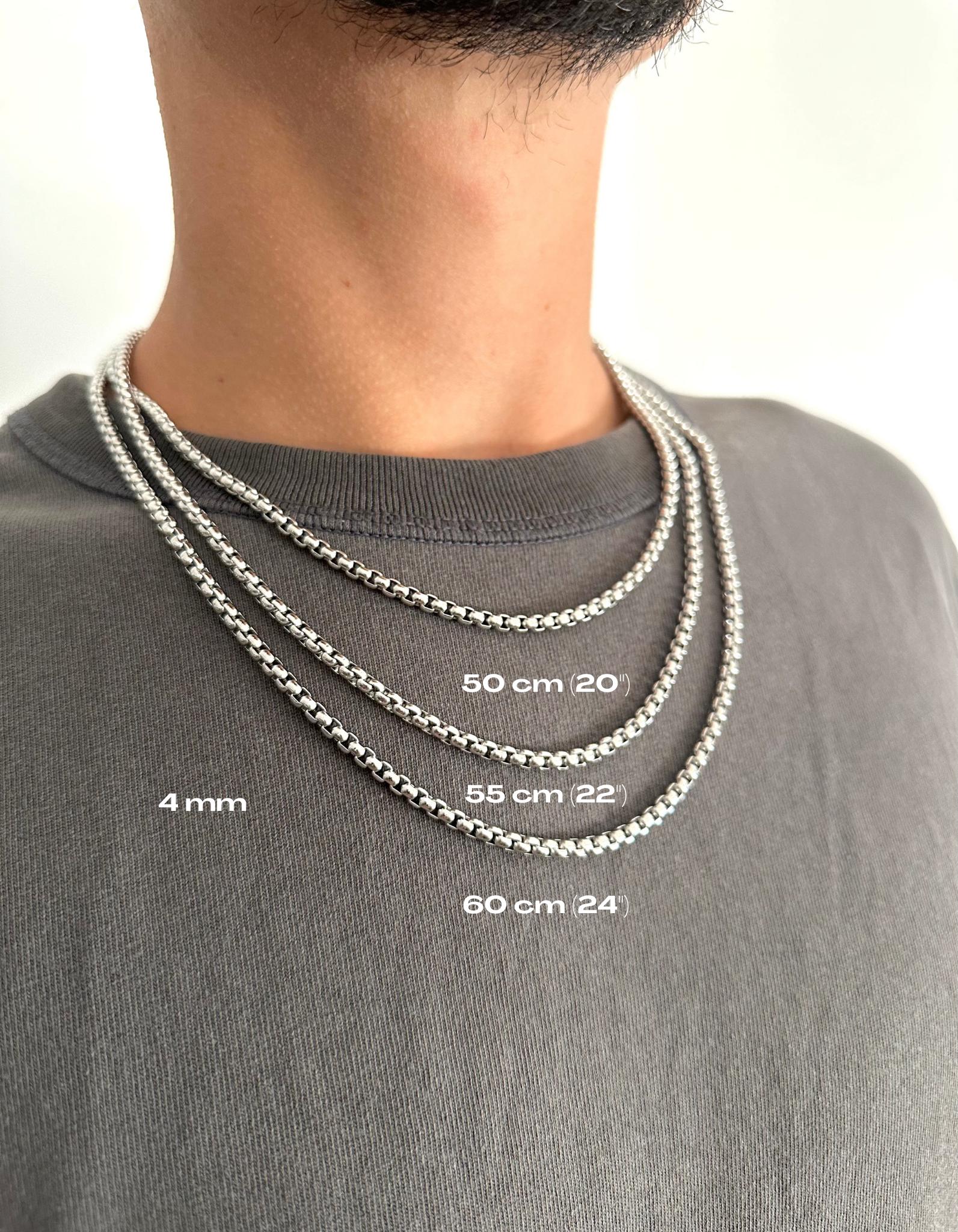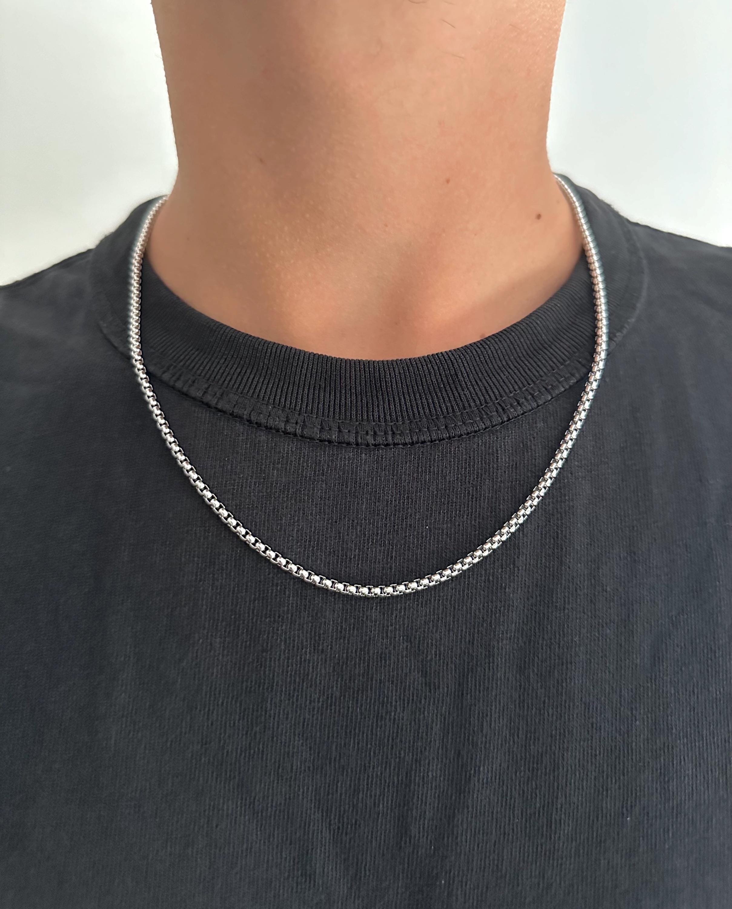 Silver box chain necklace, Stainless steel silver box chain, Men's ...