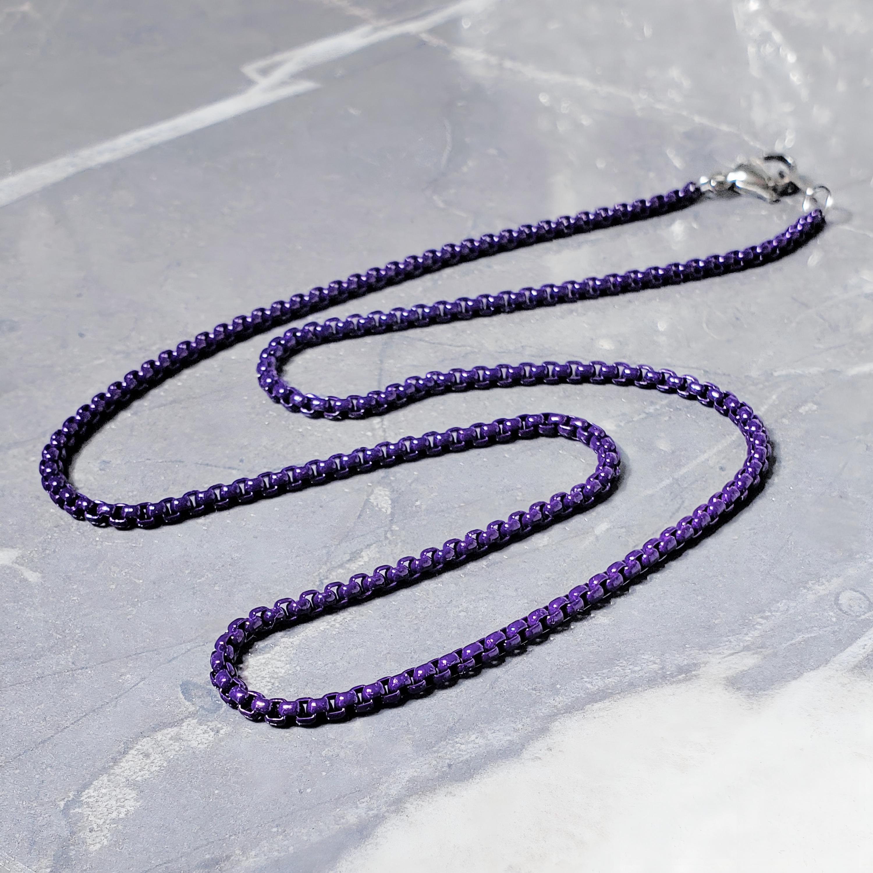 Men's AMETHYST BOX CHAIN Necklace | Men's Amethyst Purple Stainless...