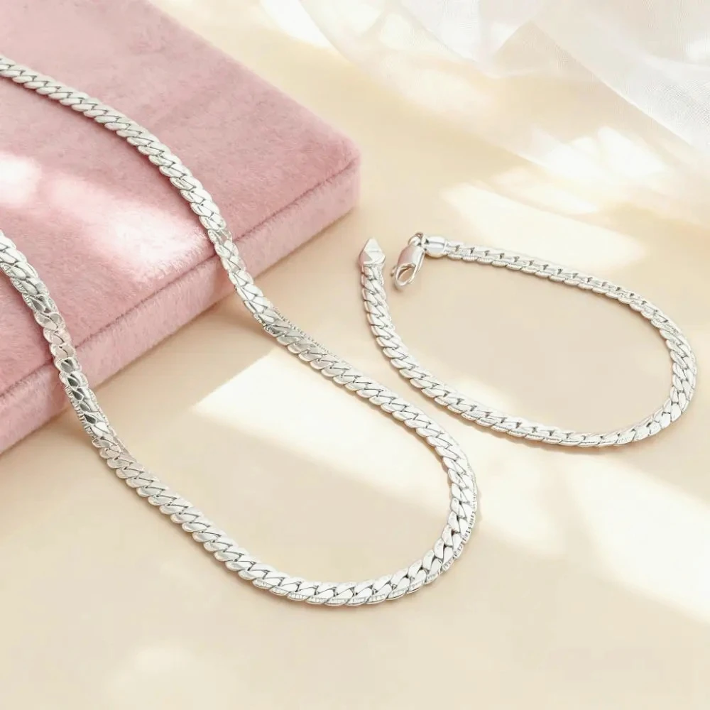 Fine brands exquisite 5MM Flat Chain 925 Sterling Silver Bracelets necklaces Jewelry sets for men Wo...