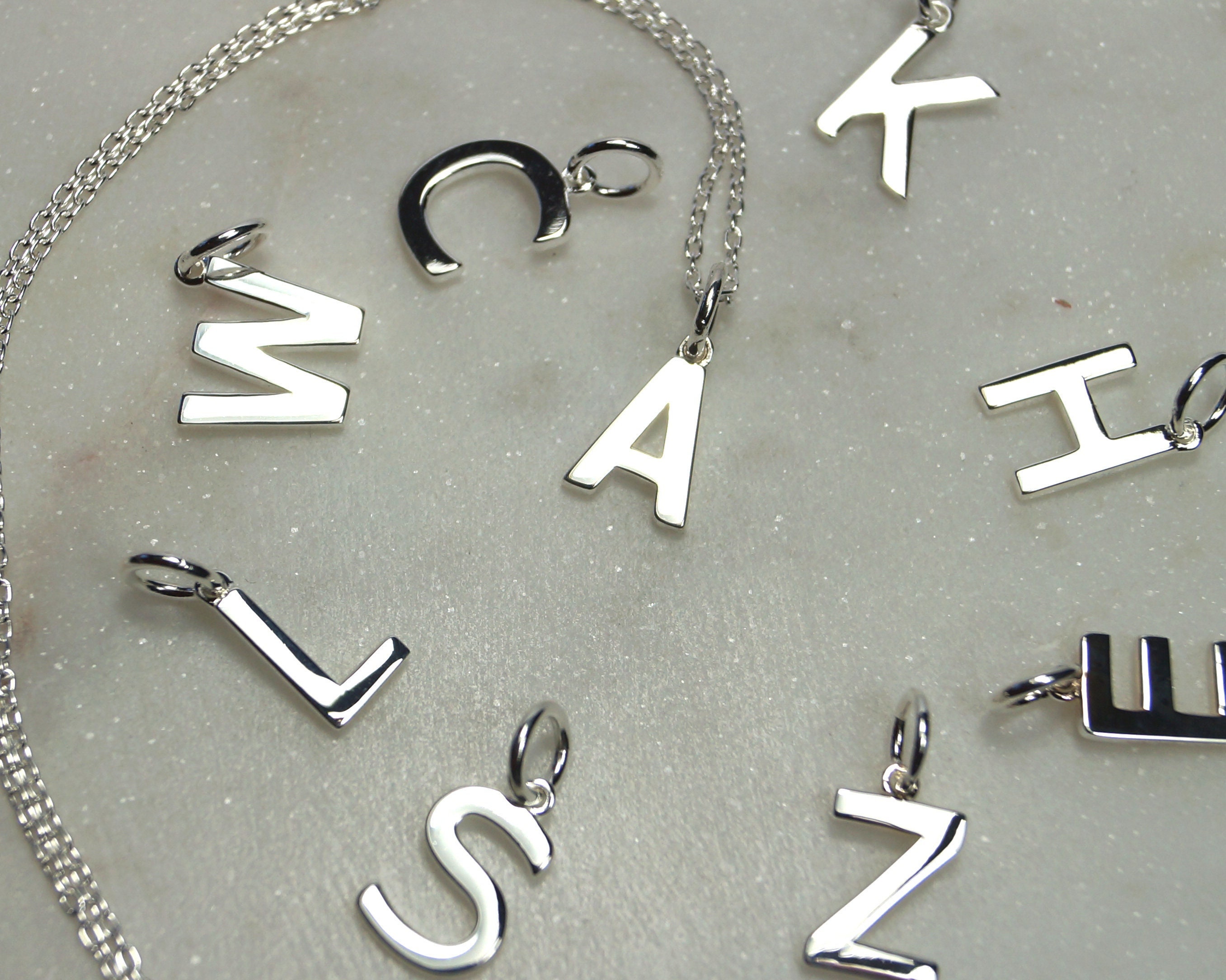 Tiny Sterling Silver Initial Letter Pendants, Small Initial Letter ...