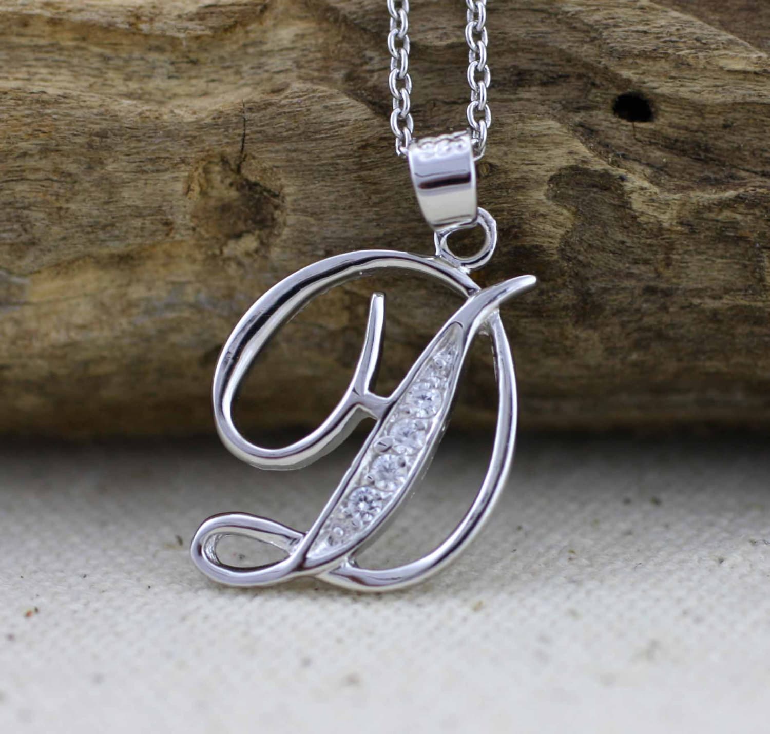 Letter D Necklace, Sterling Silver Initial Necklace, Silver Initial...