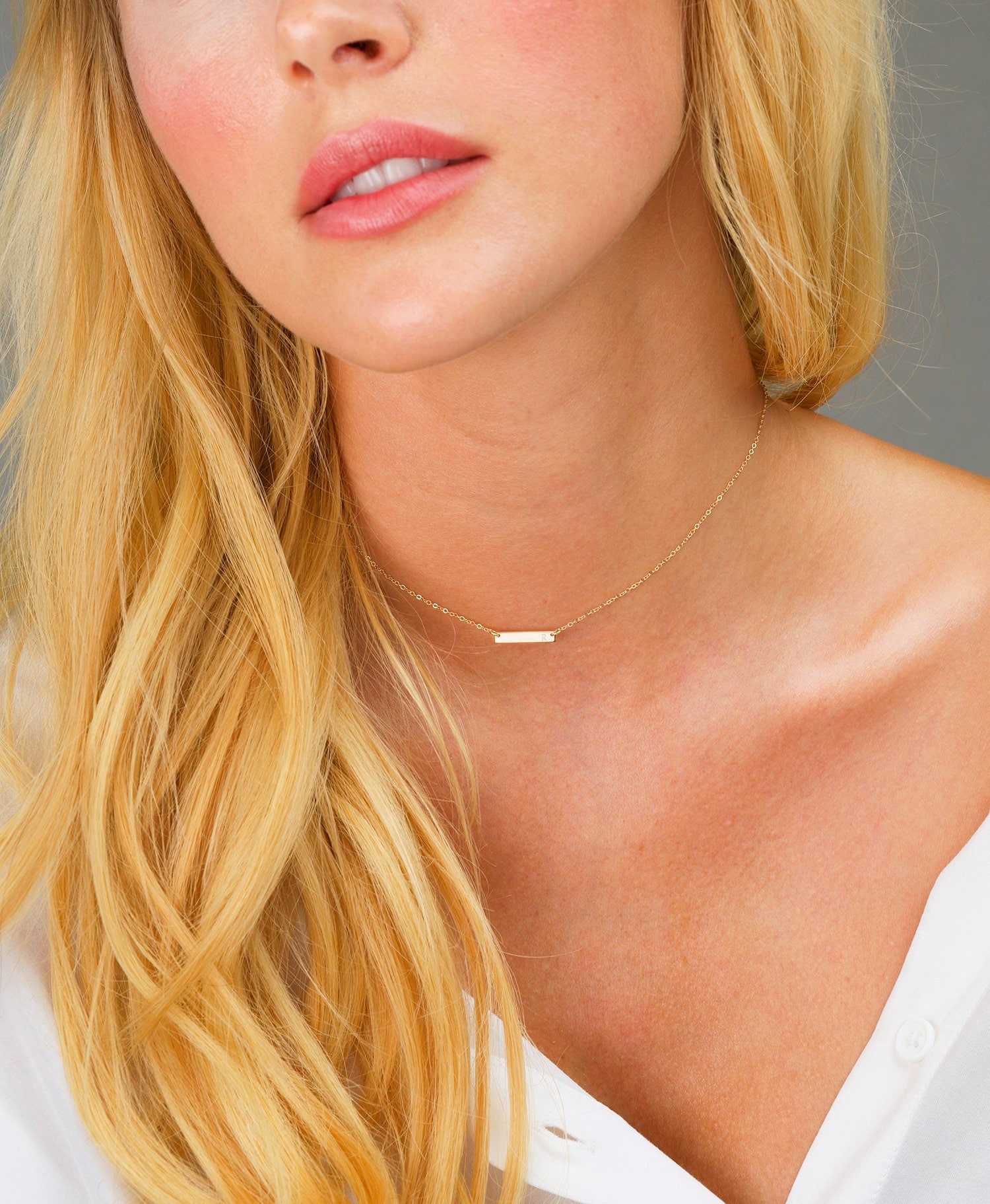 "14K Gold Bar Necklace, Name Bar Necklace, Custom Bar Pendant, Personalized Bar Choker, Gold Ba...