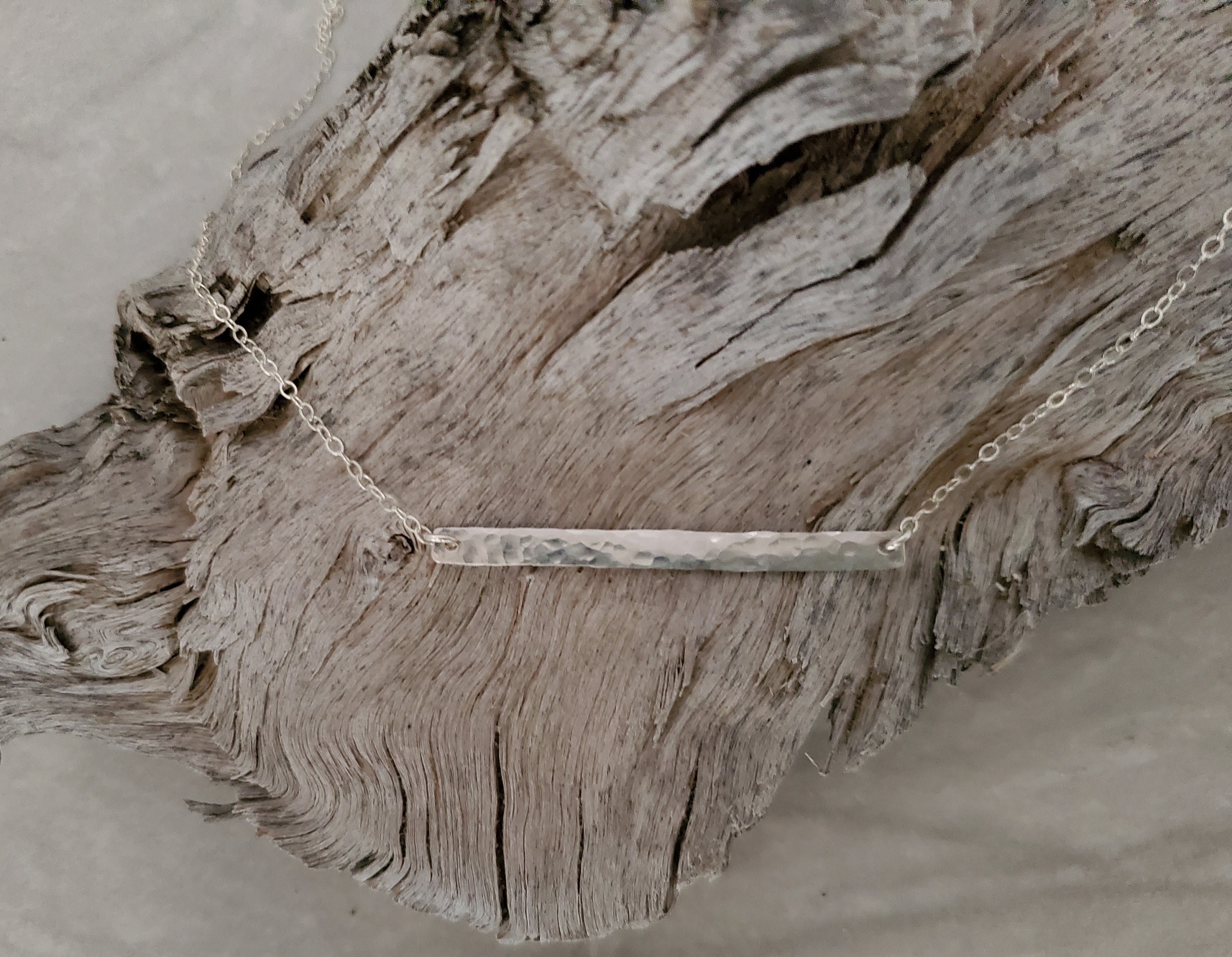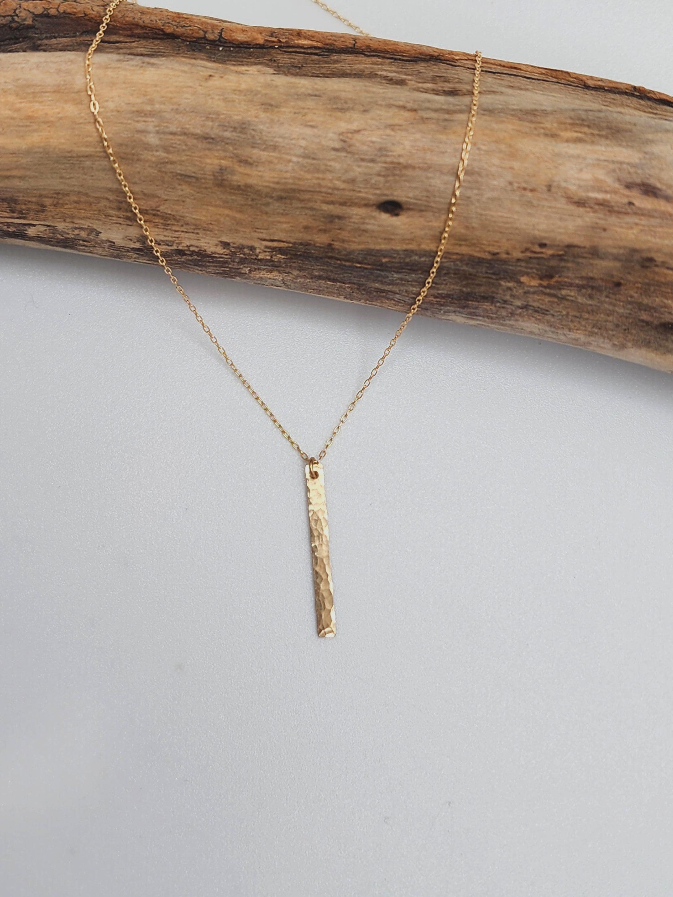 "Our smallest hammered bar necklace. Dainty and stylish, it's perfect for everyday wear! The ti...