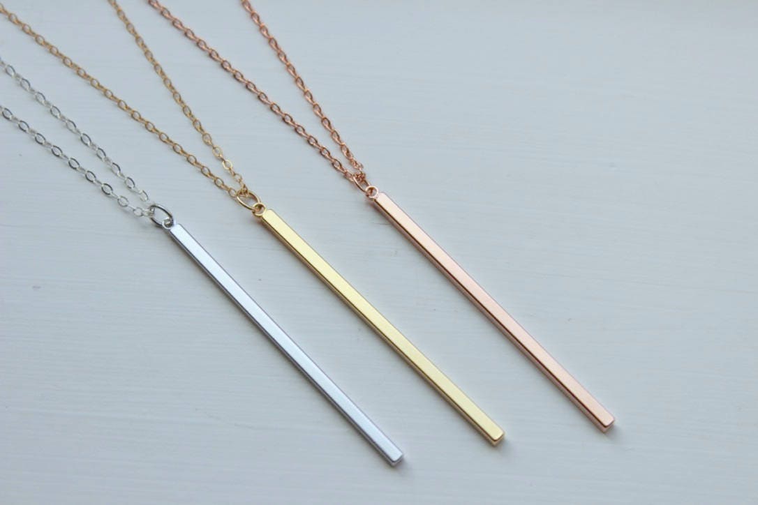 Vertical Bar Necklace, Vertical Bars, Skinny Bar Necklace, Rose Gol...
