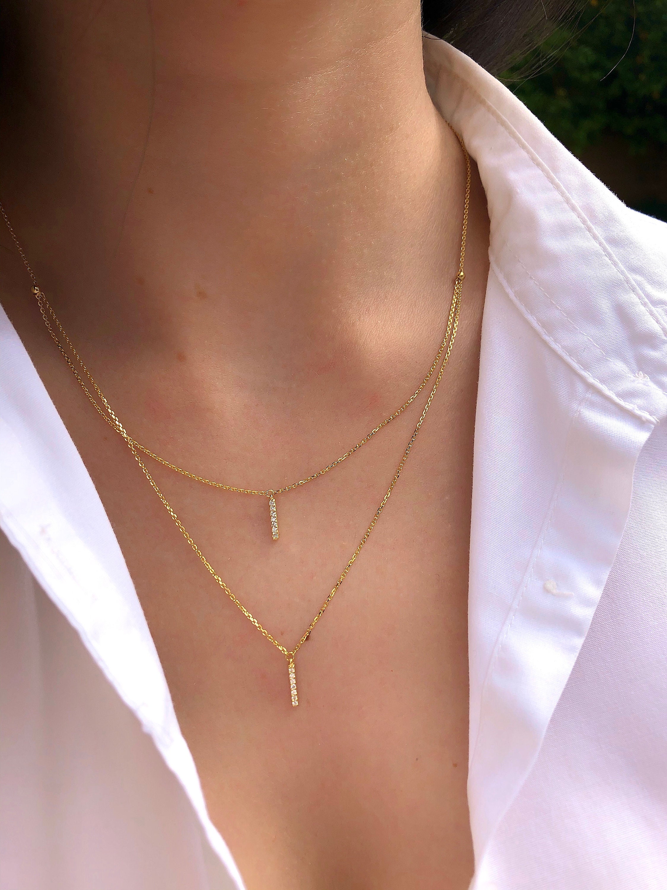 Diamond Bar Necklace, 14k Double Strand Bar Necklace, pave Diamond ...