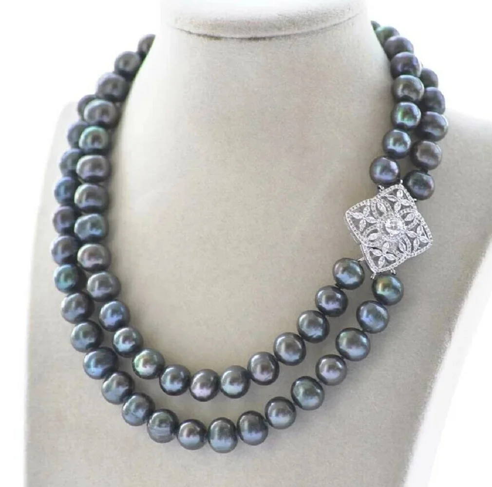 New jewelry necklace 2 rows 17-18 inches AAA10-11mm natural Tahitia...