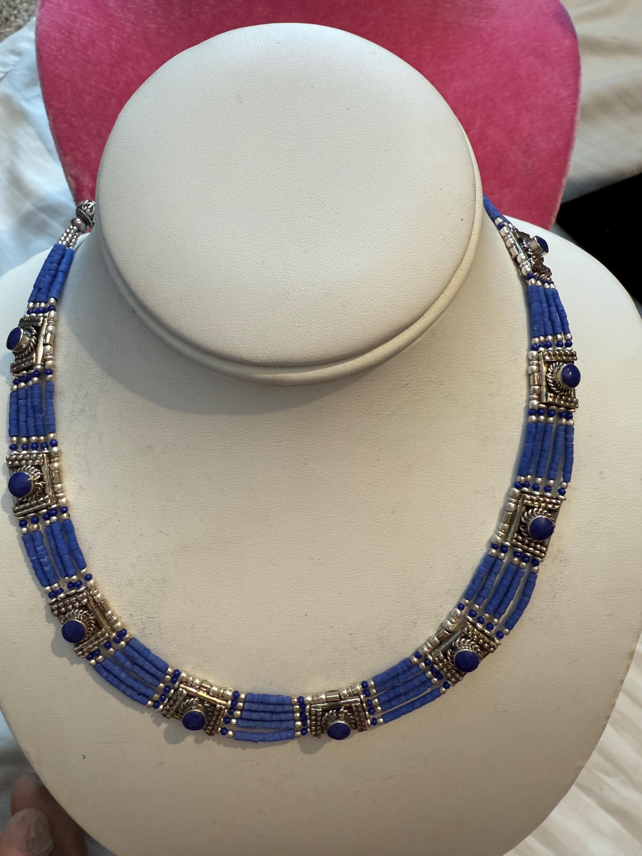 lapis lazuli mini choker necklace handmade jewelry Tibetan necklace...