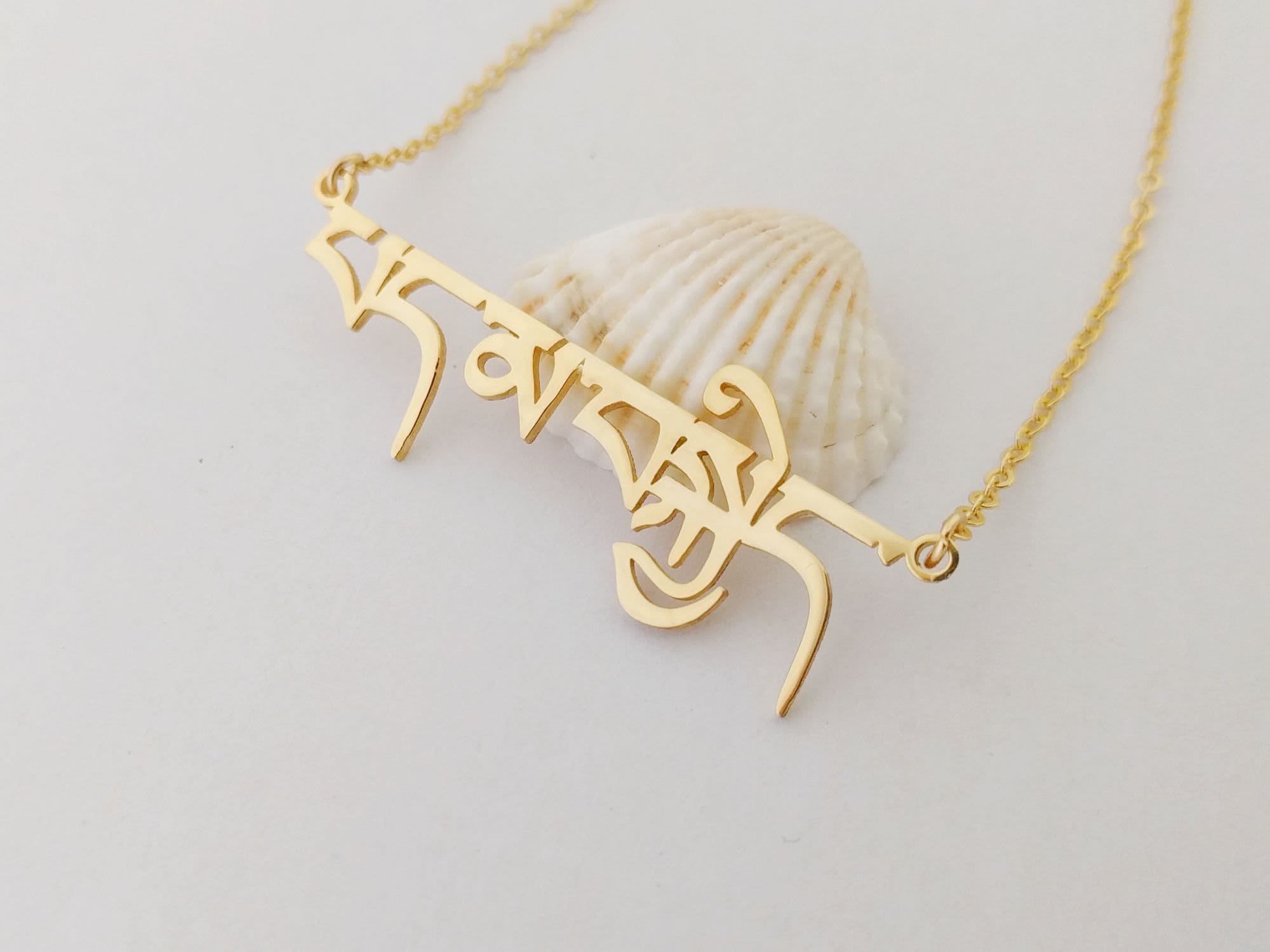 "Tibetan Sanskrit Ahimsa Necklace, Tibetan Name Necklace, Tibetan Sanskrit Necklace, Custom Tib...
