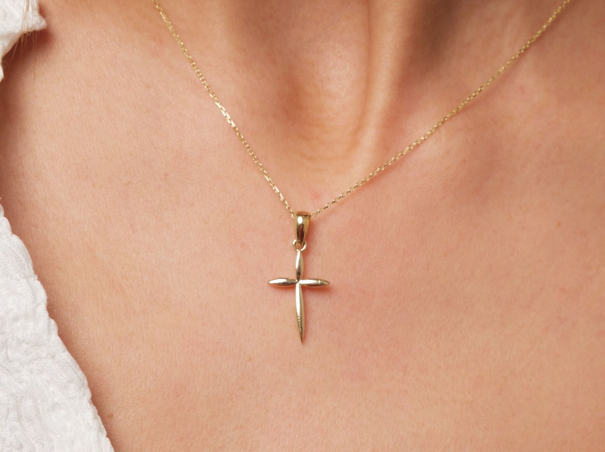 14K Gold Cross Necklace, Crucifix Gold Necklace, Dainty Gold Cross ...