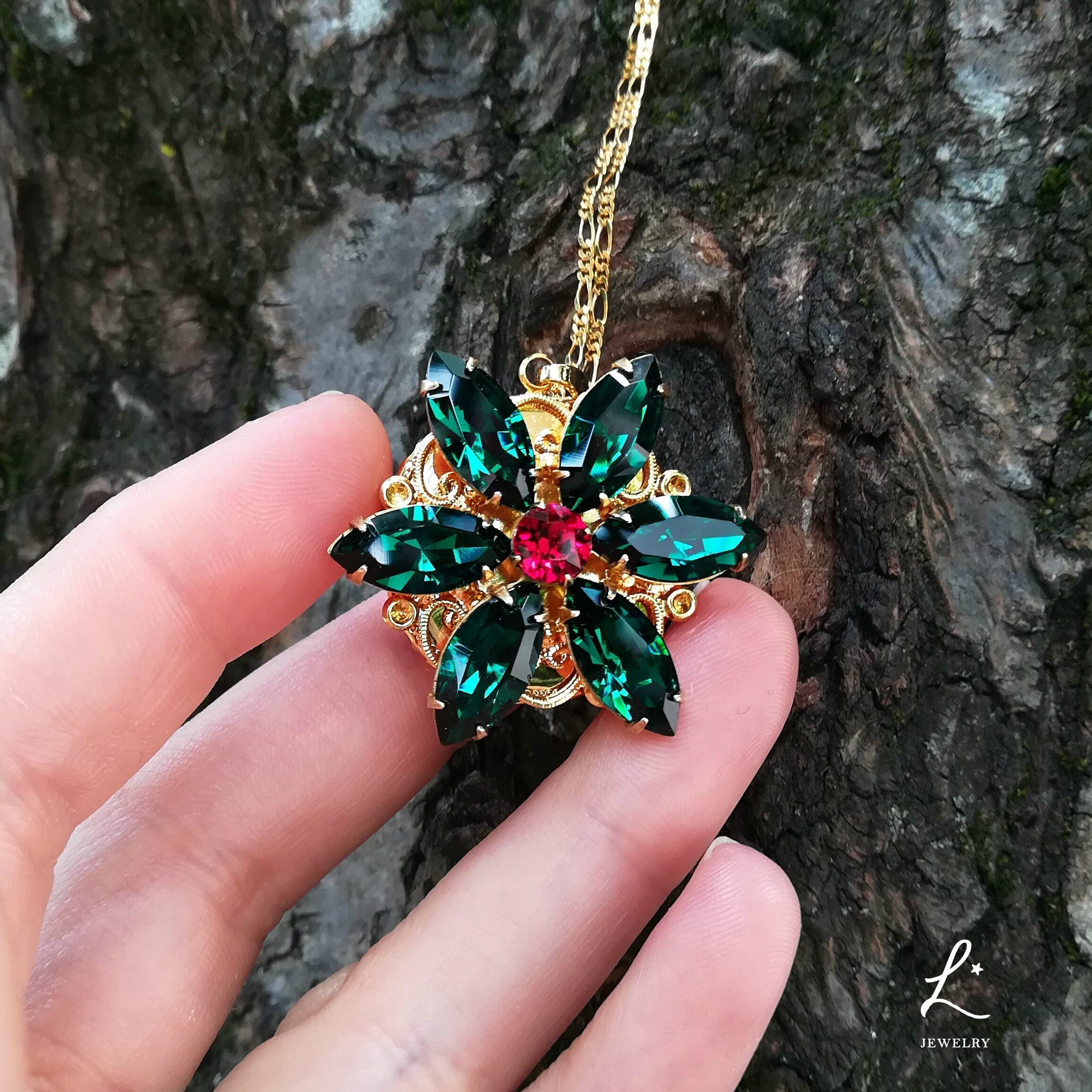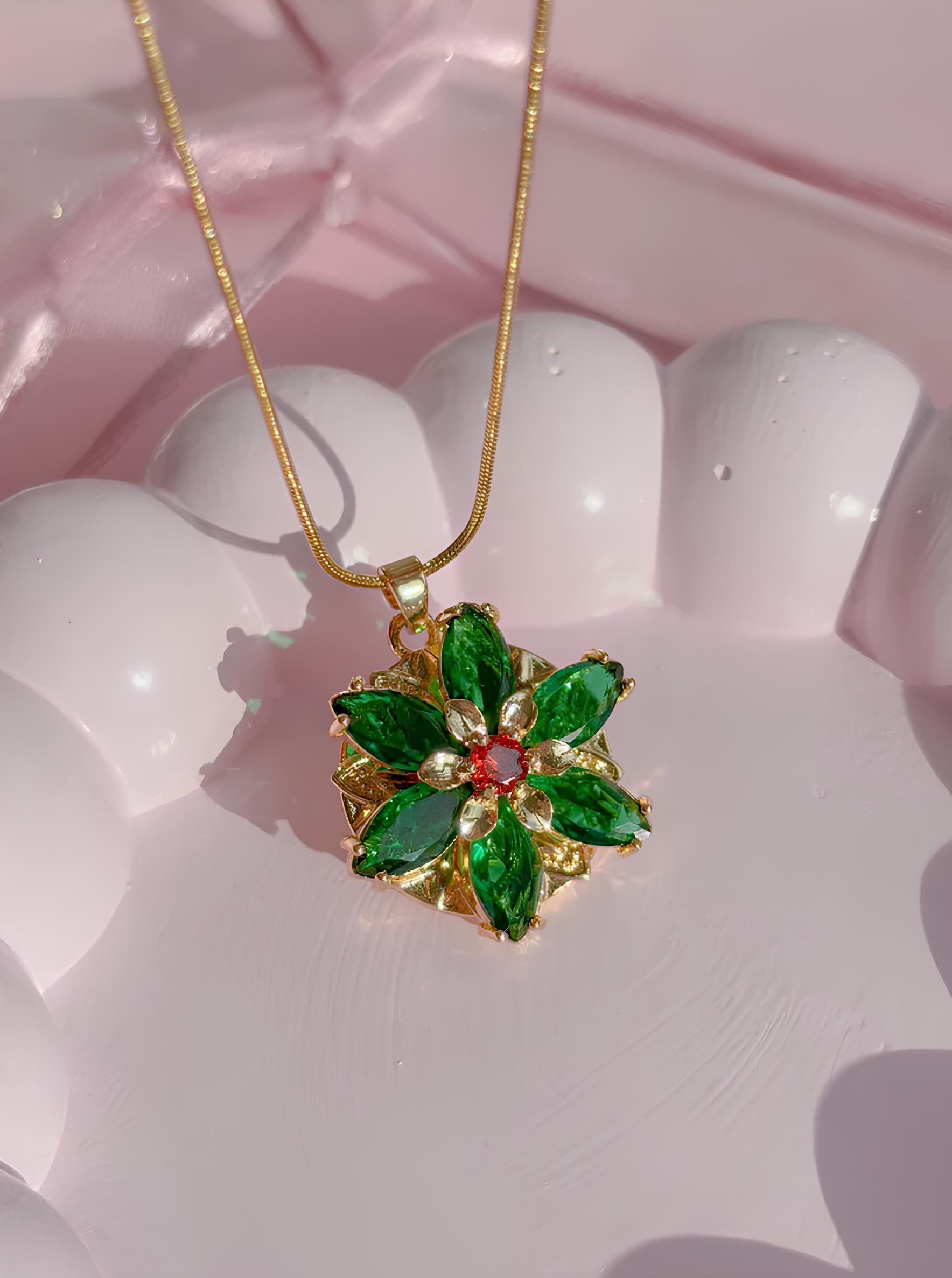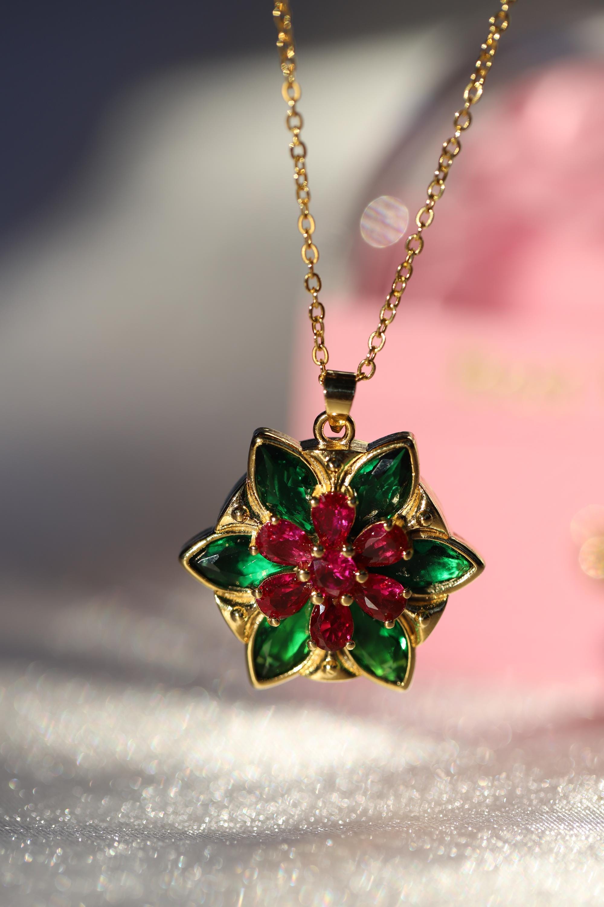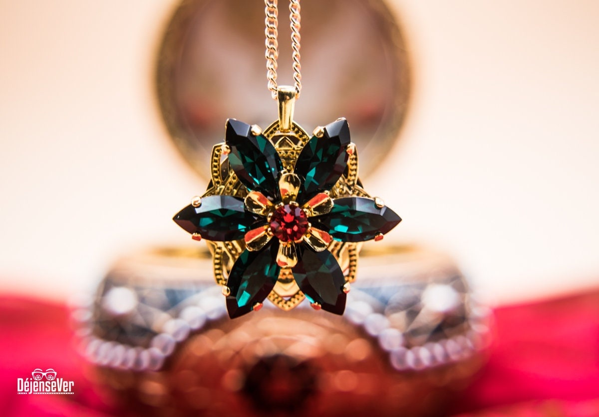 "Anastasia Together In Paris Necklace Ultra Deluxe Version ENGRAVED EMERALD GREEN + RED SIAM EX...