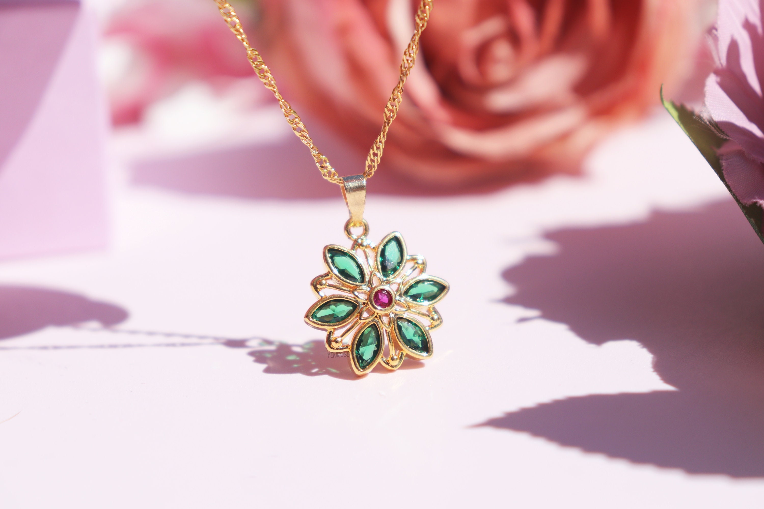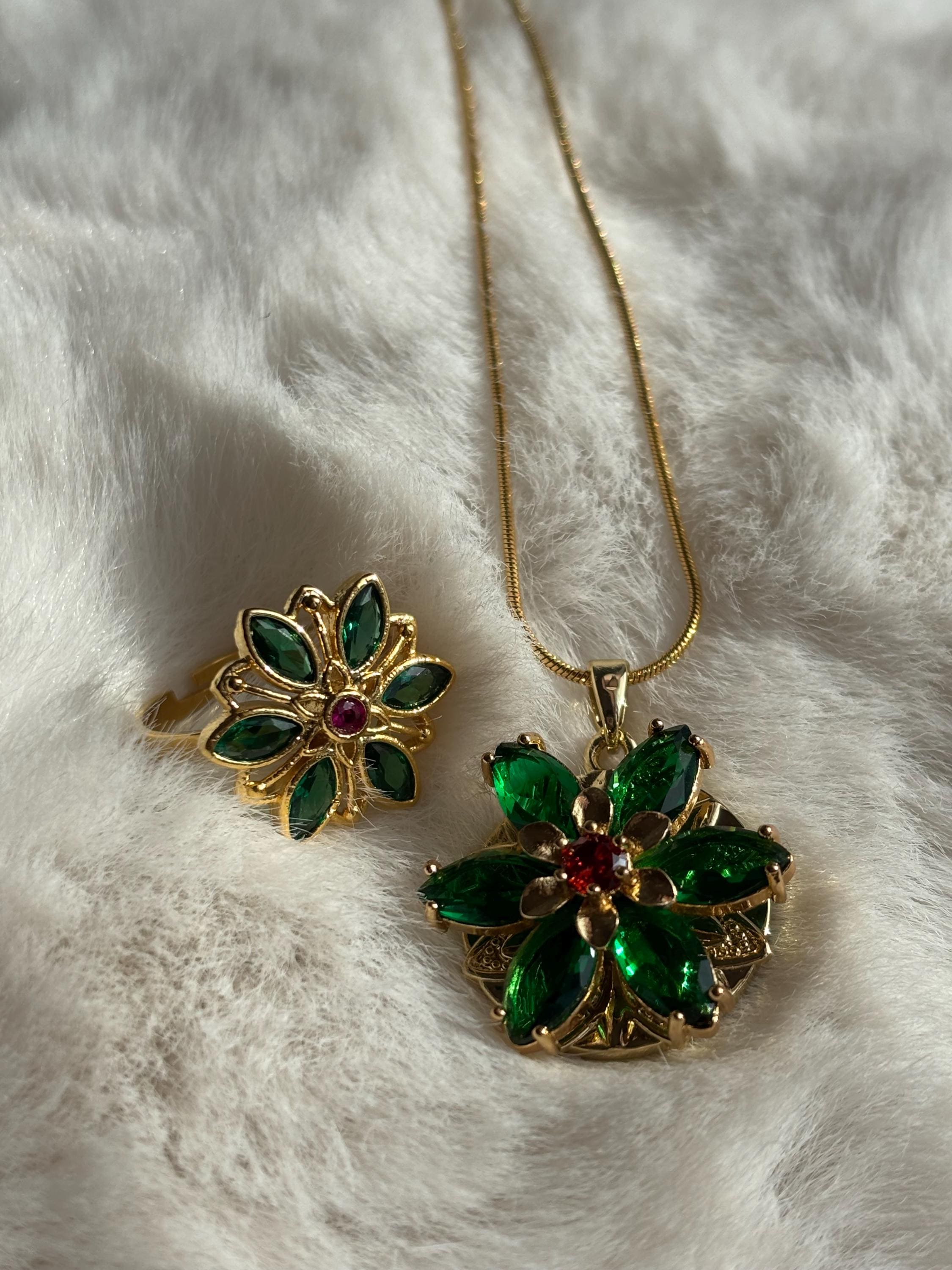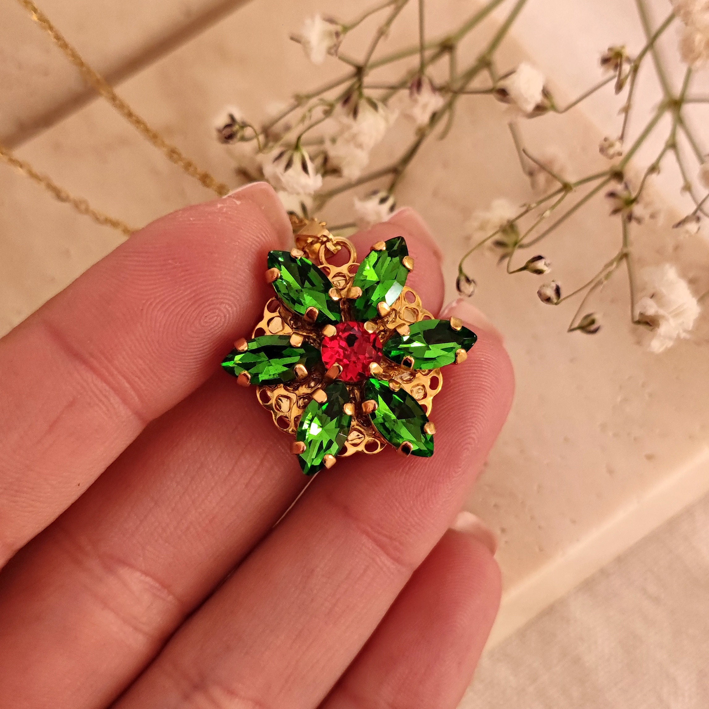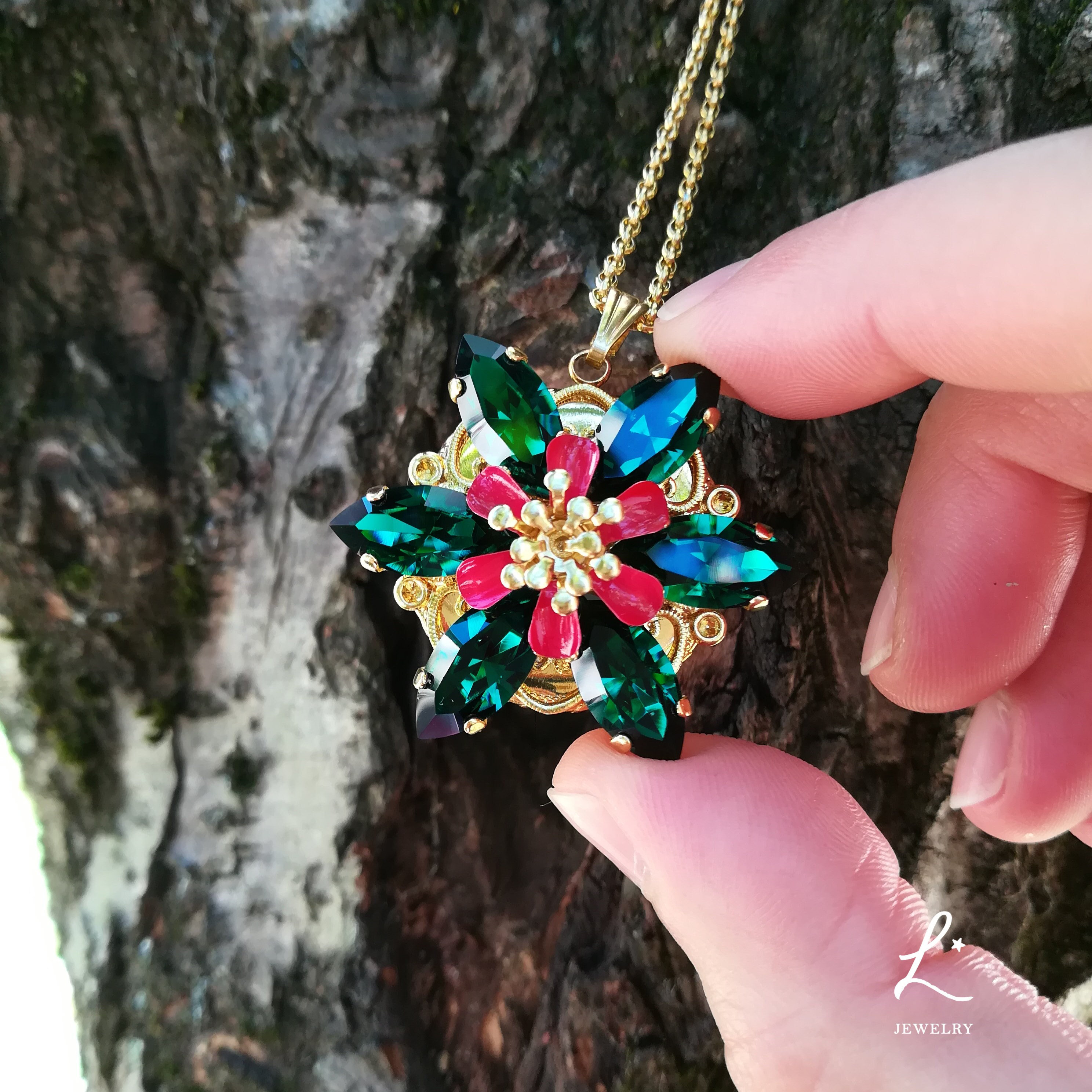 "Anastasia Together In Paris Necklace Ultra Deluxe Version ENGRAVED EMERALD GREEN + RED SIAM EX...