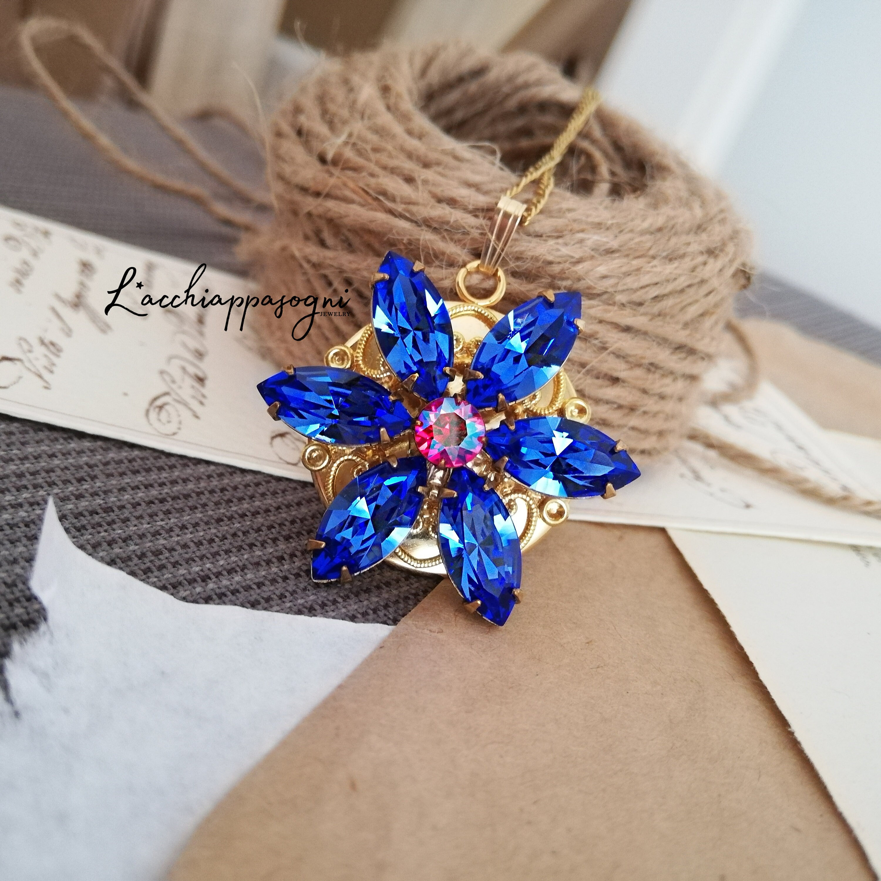 "Anastasia Inspired Together In Paris Necklace Ultra Deluxe Version ENGRAVED SAPPHIRE + LIGHT S...