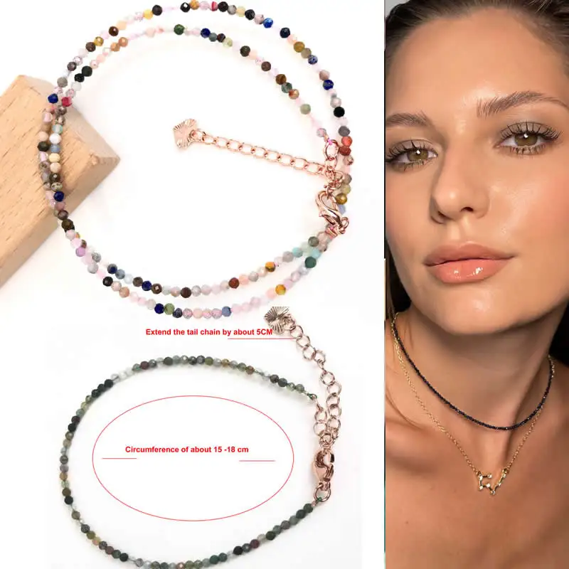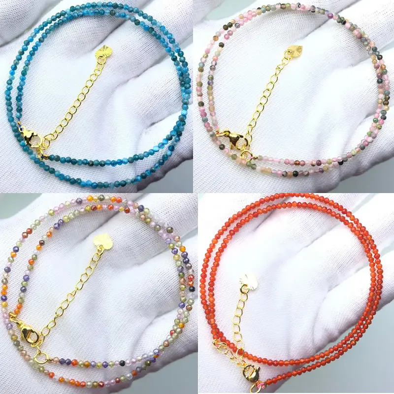 2-3mm Natural Stone Beads Necklaces For Women Men Faceted Indian Agates Tourmaline garnet Crystal qu...